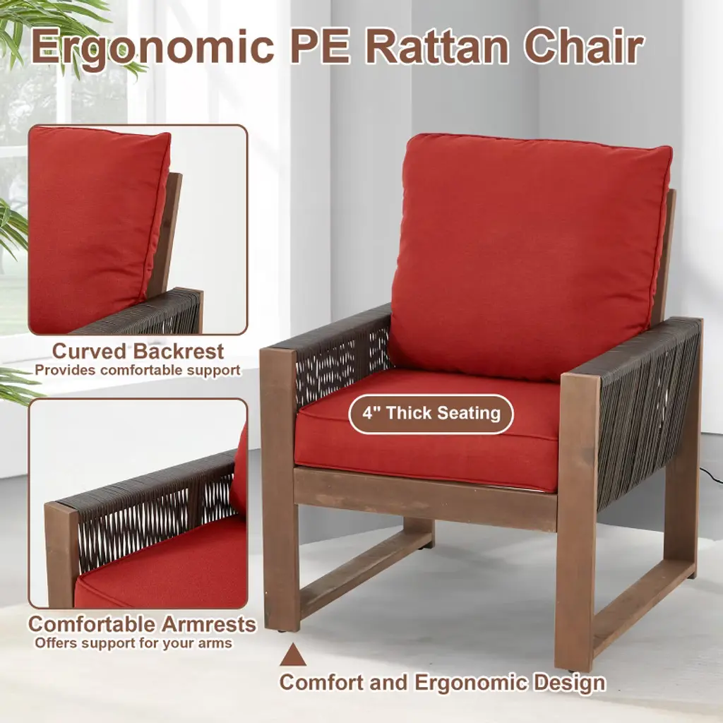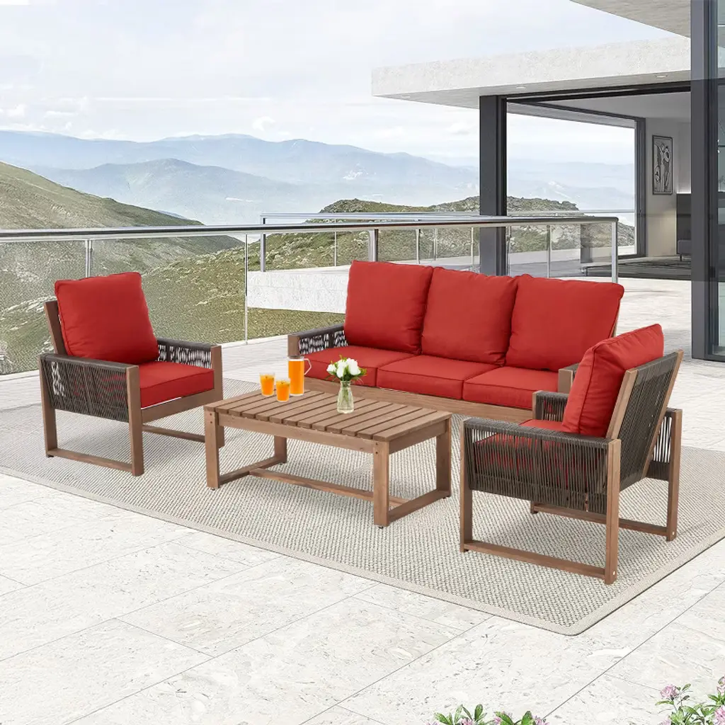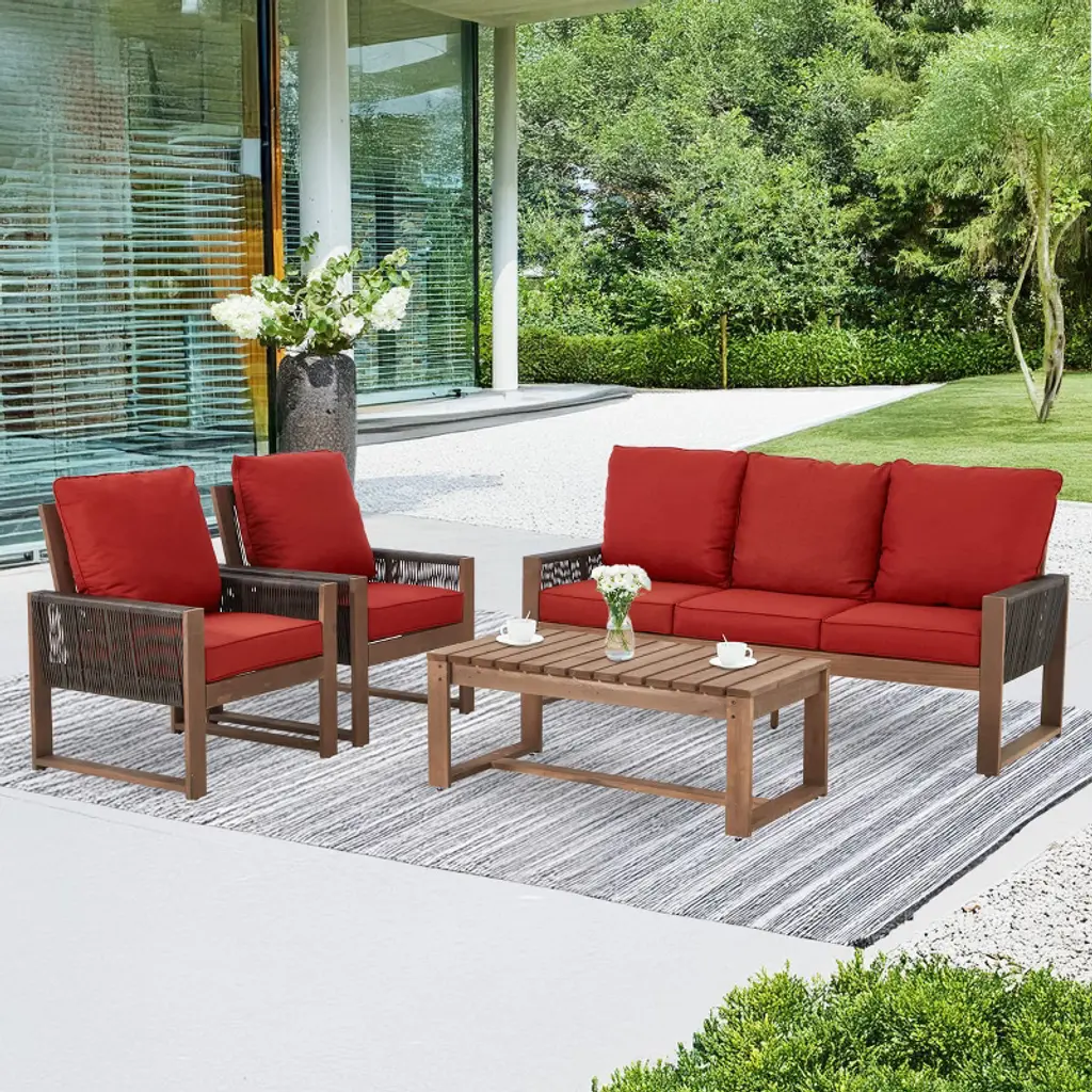 Erommy 4-piece Cedar Patio Set With Pe Rope & Cushions - All-weather Outdoor Conversation Group