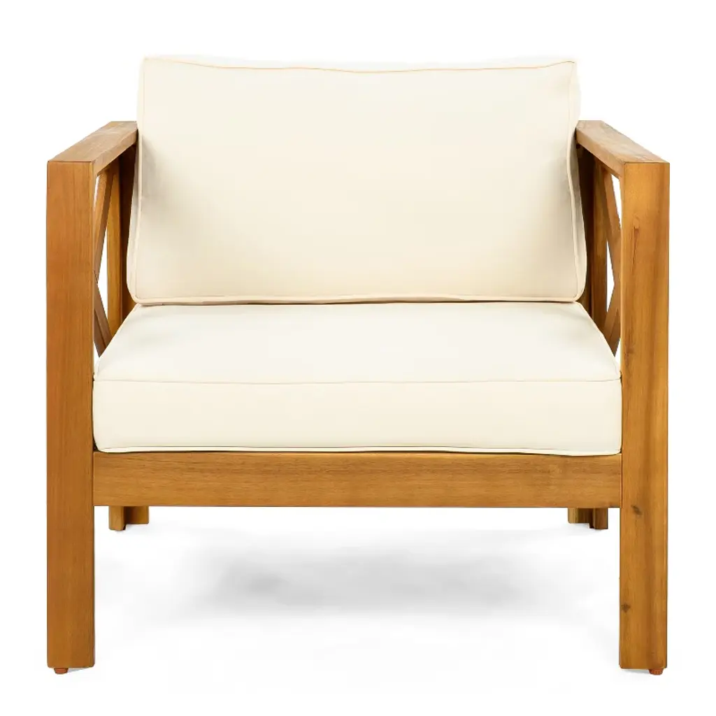 Bring comfort and style to your outdoor space with this 3-piece Acacia Wood Patio Conversation Set. Designed with two armchairs featuring beige cushions and a foldable side table, this set offers a warm and inviting look. The acacia wood frame in teak finish provides durability and weather resistance, making it perfect for gardens, patios, balconies, or backyards.