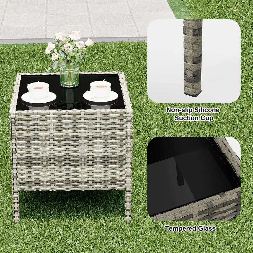 The sleek square side table comes with a sturdy tempered glass top, adopt for holding snacks or beverages. The glass is securely fastened with four suckers, making it stable and easy to clean with a damp cloth, ensuring it remains a centerpiece of style.
