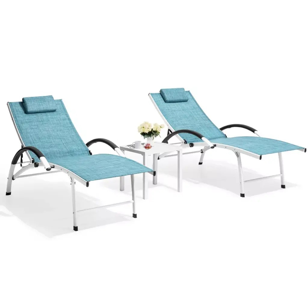 Gulches Lake Blue 3-piece Aluminum Patio Chaise Lounge Set With Adjustable Backrest & Side Table