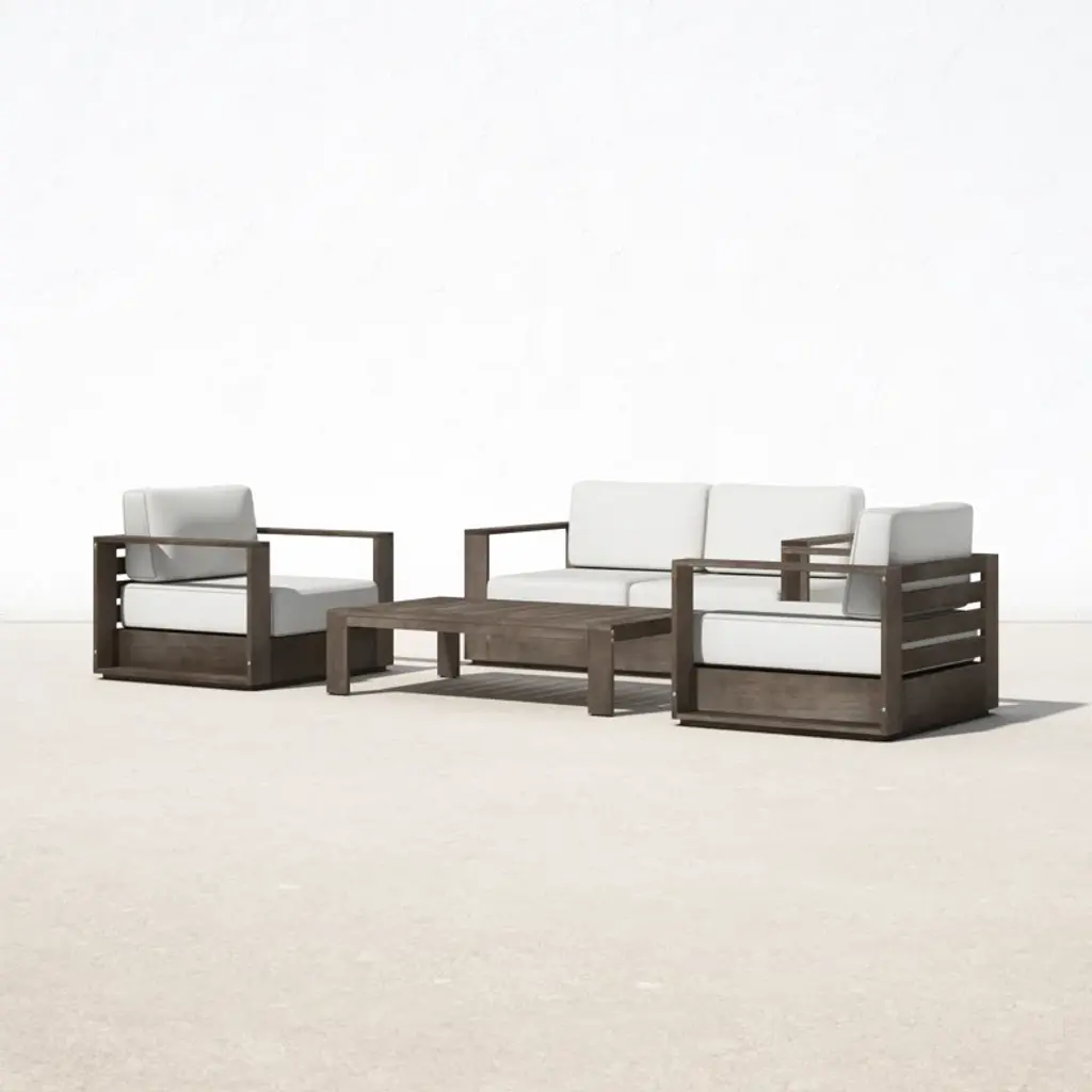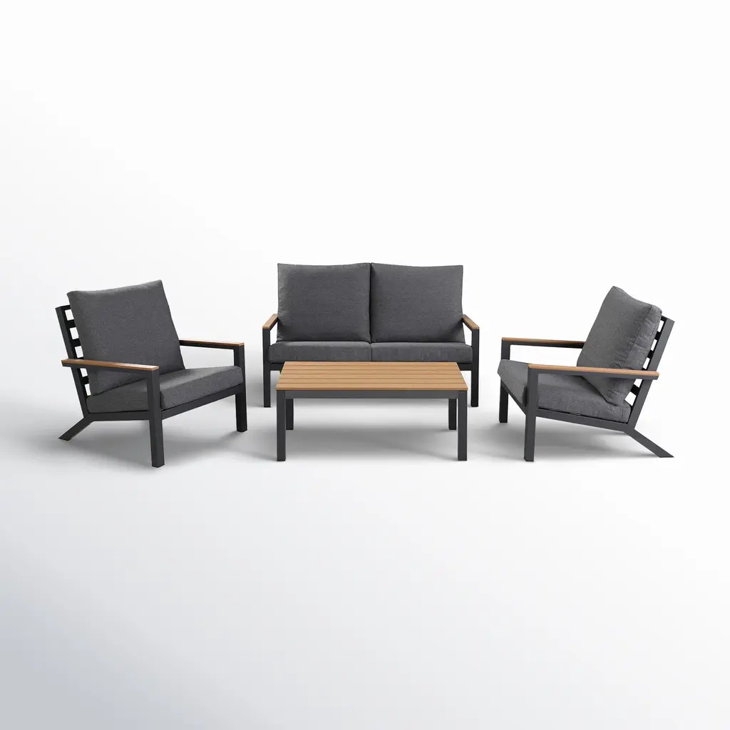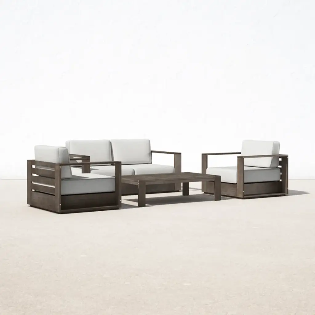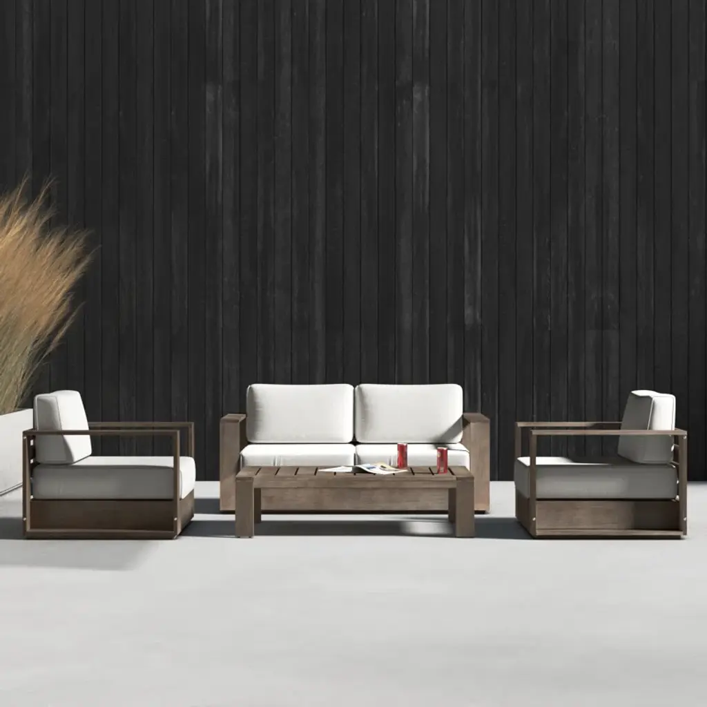 The perfect 4-piece sofa set for your ideal outdoor space. Set includes 2 chairs, 1 loveseat and 1 table. Made from solid wood this sofa set is built to last. Easy to assemble and easy to maintain. So, call some friends over, pour some drinks and have some fun in the sun.
