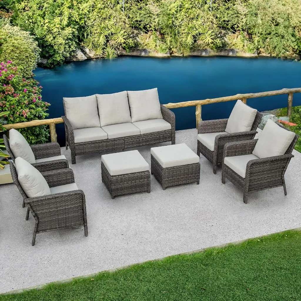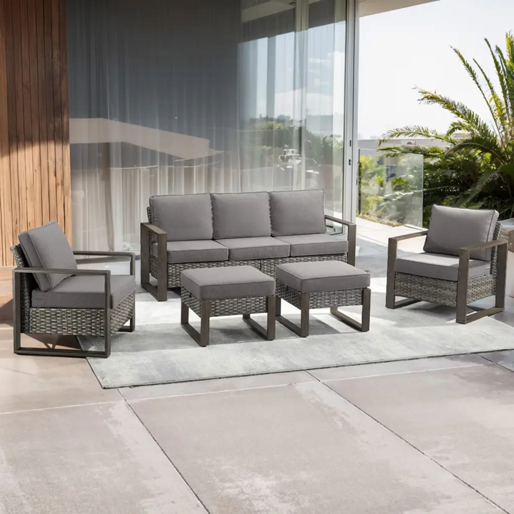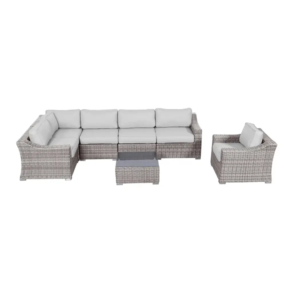 Subtle curves, tall legs, and thin arms are design features that make Harriet shine. Grey-toned wicker complements your choice of silver or mist fabrics for a timeless, neutral color palette.