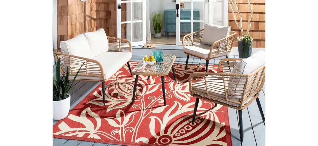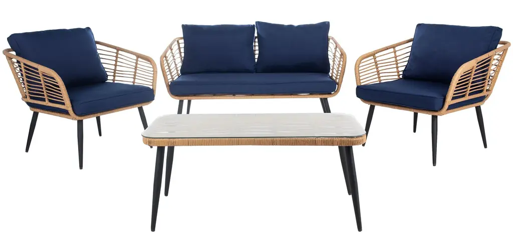 Whether enjoying morning lattes on the deck or cocktail hour cosmos on the patio, the simply elegant Henderson 4-pc. Patio Set lends a chic vibe to the occasion. Decadent yet refined, comfy cushions and handsome rattan are paired perfectly in the club chairs and settee of Henderson, with a pretty as picture coffee table front and center in this resort style scene.