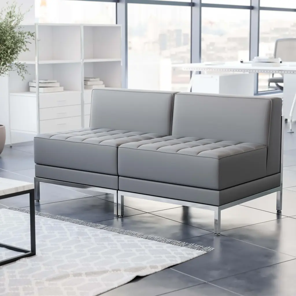 Your lobby or reception area is the forefront of your business and providing distinguished and comfortable seating is the first step towards making a great impression. Featuring a taut seat and back with foam filled cushions, these chairs provide optimum support for long hours of sitting. This collection offers modular pieces that will allow you to reconfigure the space to accommodate your guests as your business grows. Purchase this complete set and add on any additional pieces now or later.