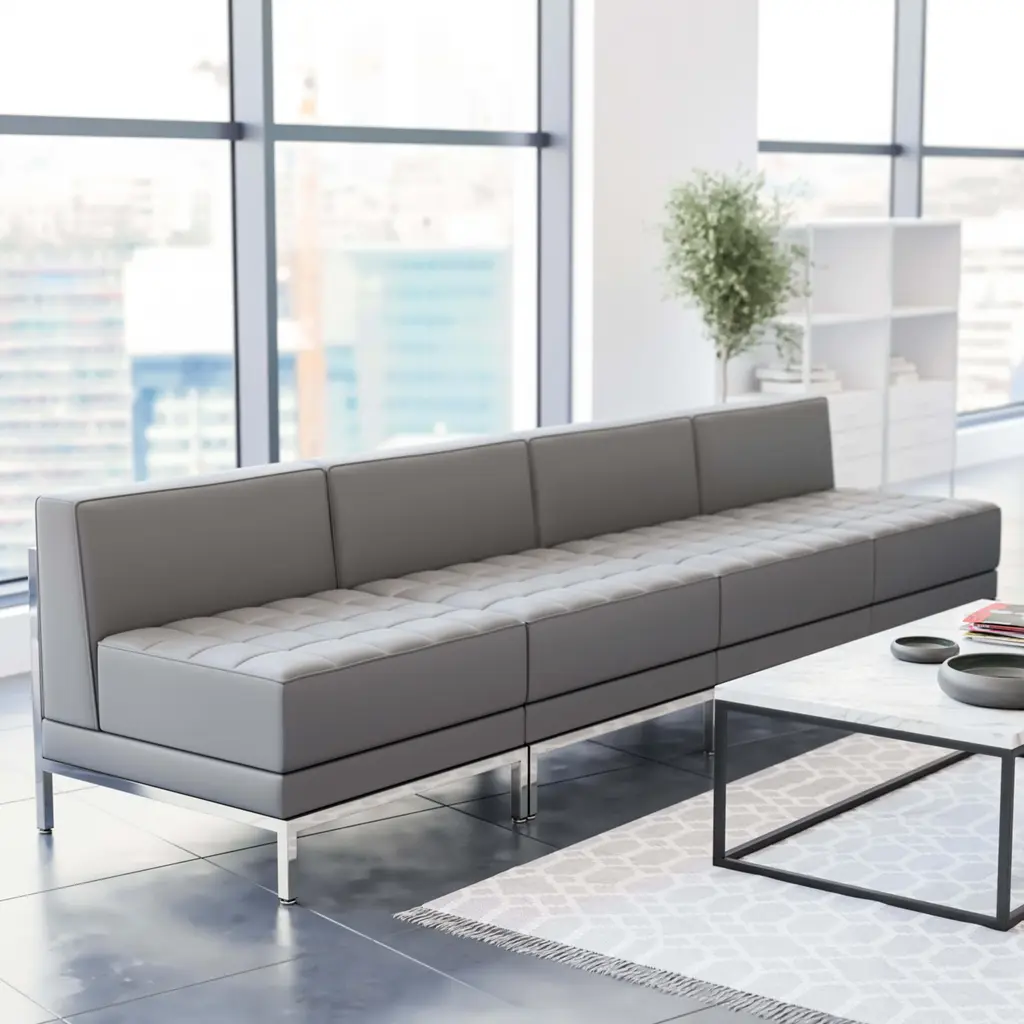 Your lobby or reception area is the forefront of your business and providing distinguished and comfortable seating is the first step towards making a great impression. Featuring a taut seat and back with foam filled cushions, these chairs provide optimum support for long hours of sitting. This collection offers modular pieces that will allow you to reconfigure the space to accommodate your guests as your business grows. Purchase this complete set and add on any additional pieces now or later.