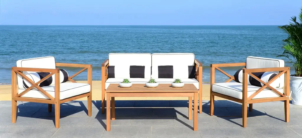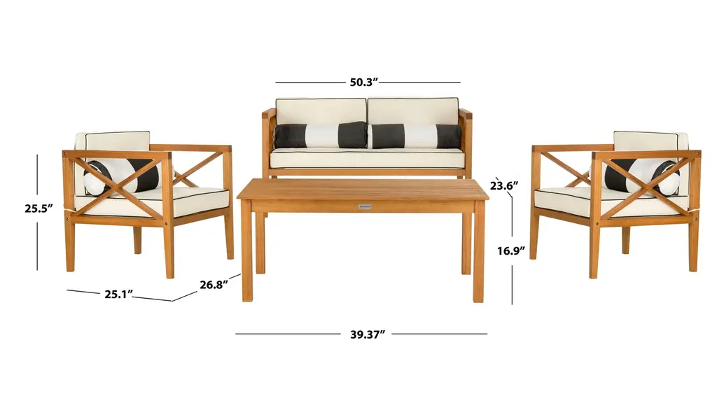 Update any outdoor living space with this contemporary Johannes 4-pc. patio set. Crafted in a neutral hue, designers love its modern cross back style. Ideal for all outdoor entertaining, its plush upholstery with accent pillows makes it a great investment.