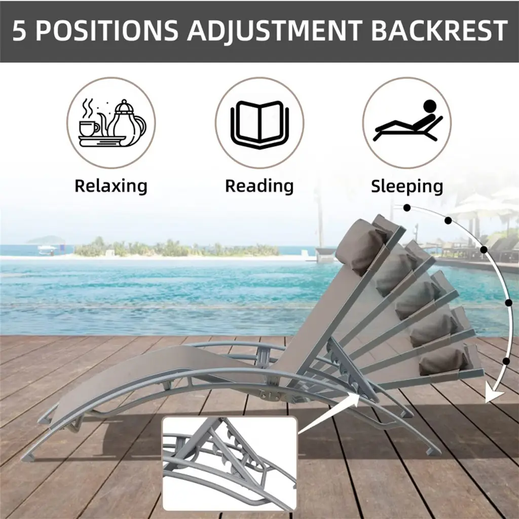 Jujabu Outdoor Aluminum Chaise Lounge Set Of 3 With Adjustable Backrest And Side Table – Khaiki