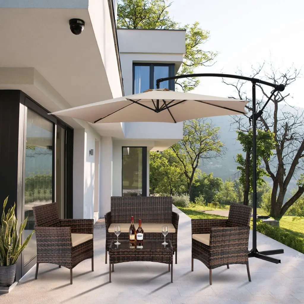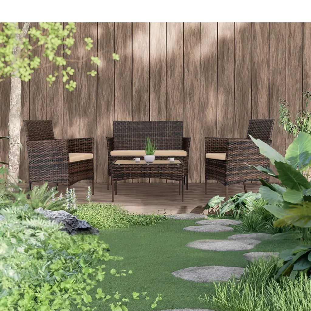 Karl Home 4-piece Wicker Patio Conversation Set With Beige Cushions