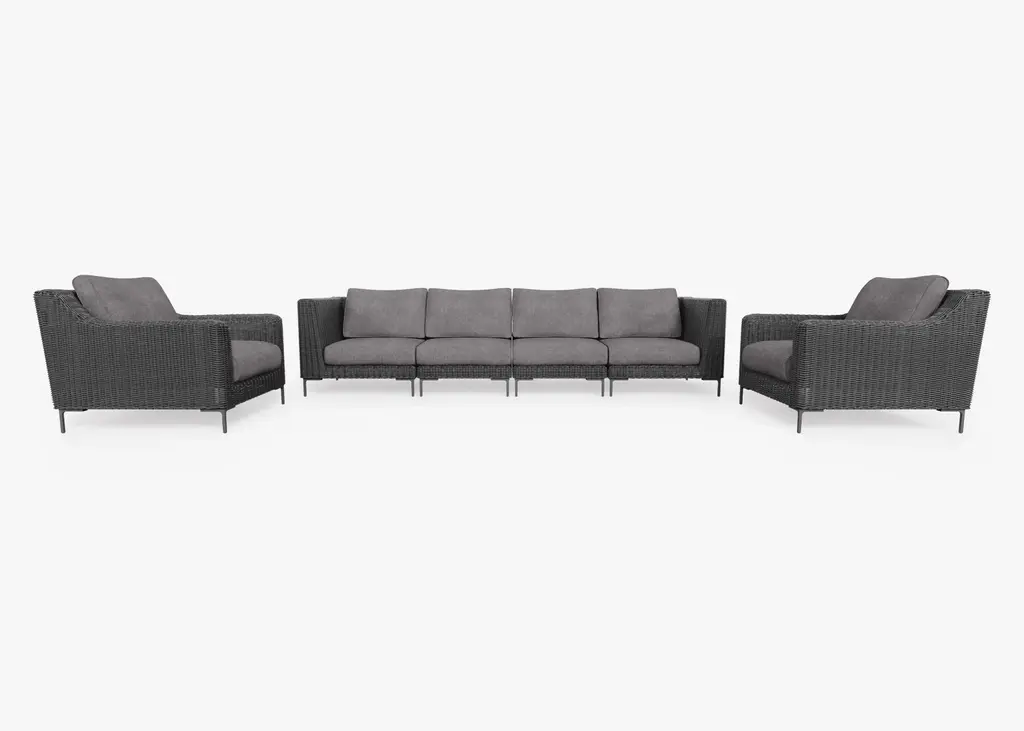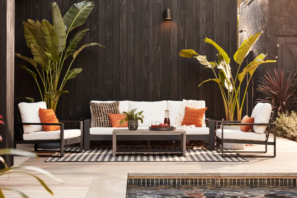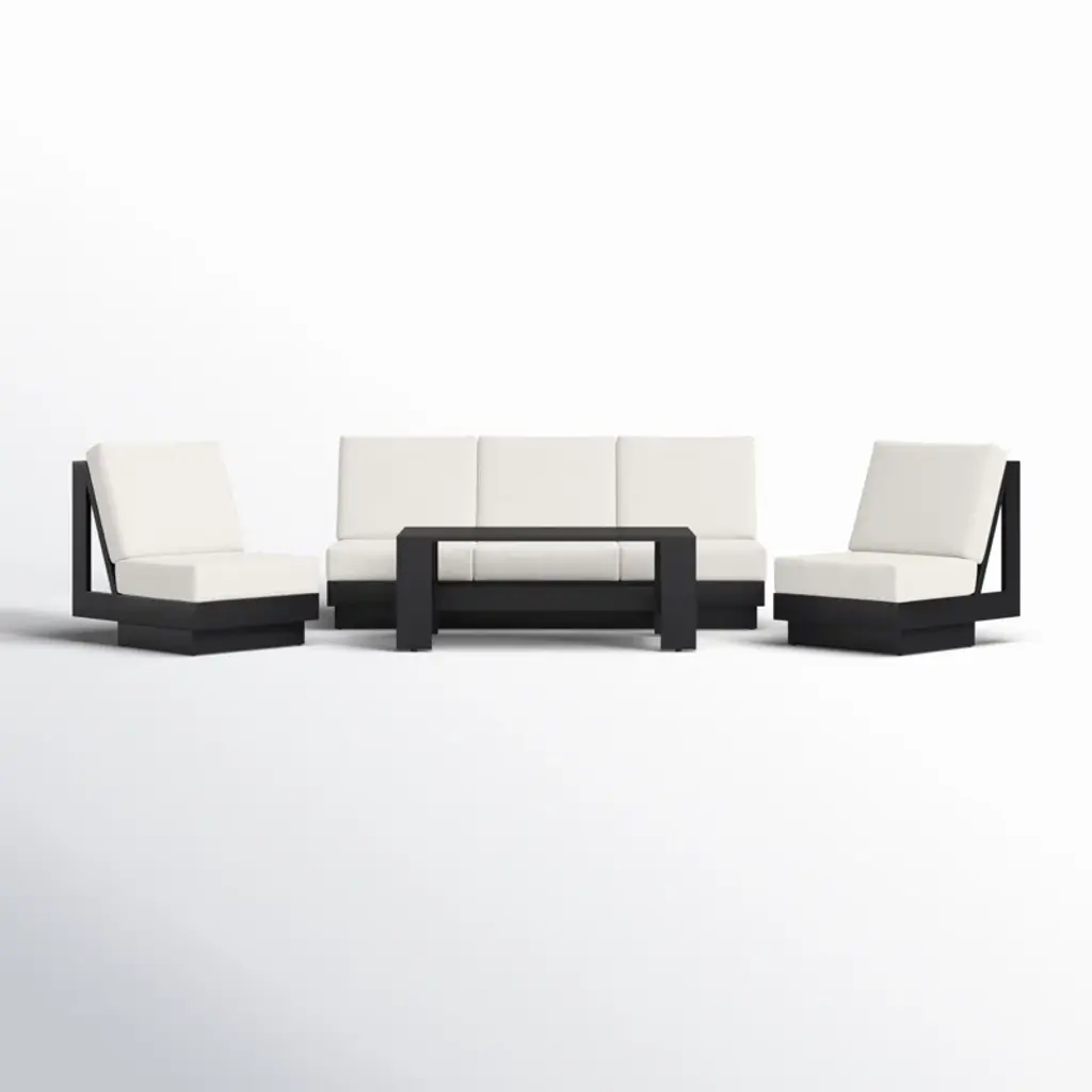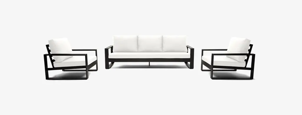 Instantly create your favorite backyard spot with this 3 piece set, featuring two chairs and a sofa showcasing modern style and plush cushioning. Staycations have never looked better. The Lucia Outdoor Sofa Set combines chic squared black metal framing with plush off-white cushions for the perfect setting for all your poolside hangs and sun soaked activities.