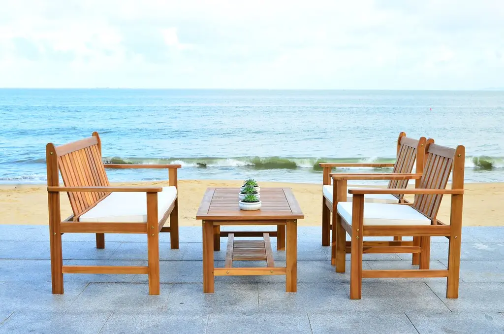 A modern take on classic Shaker furniture, the Maelis 4 piece outdoor set seamlessly blends with both traditional and contemporary architecture. Crafted from eco-friendly acacia wood, this set is designed to provide comfort with its all-weather seat cushions.