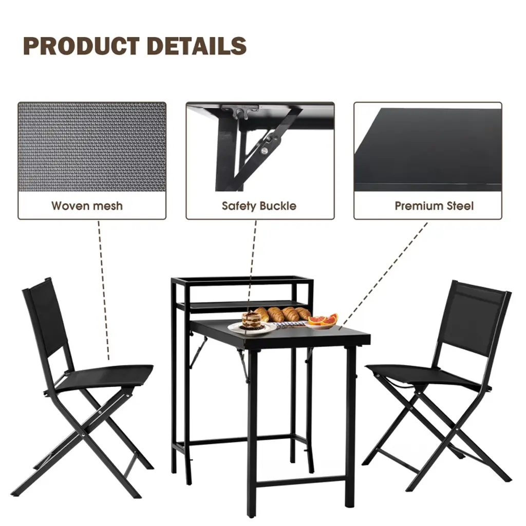 Maliang 3Pcs Patio Bistro Set, Patio Set Of Foldable Patio Table And Chairs,outdoor Patio Furniture Sets,black
