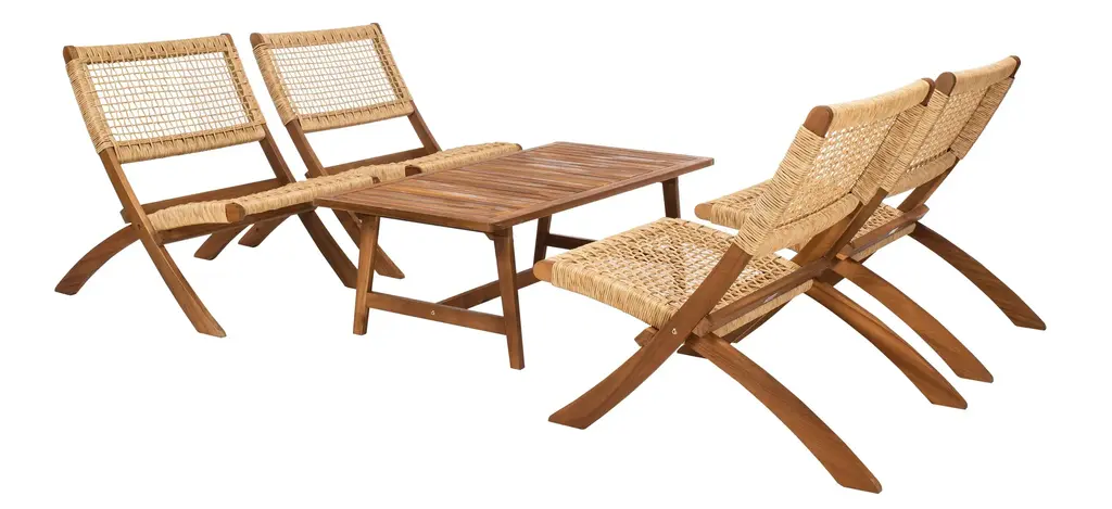 Perfect for morning coffees or evening cosmos, this Matteo 5-pc. Patio Set refreshes British Colonial style for today's outdoor entertaining. Matteo's four chairs flaunt organic curves and woven rattan details that beautifully juxtapose the clean angles of its coffee table.