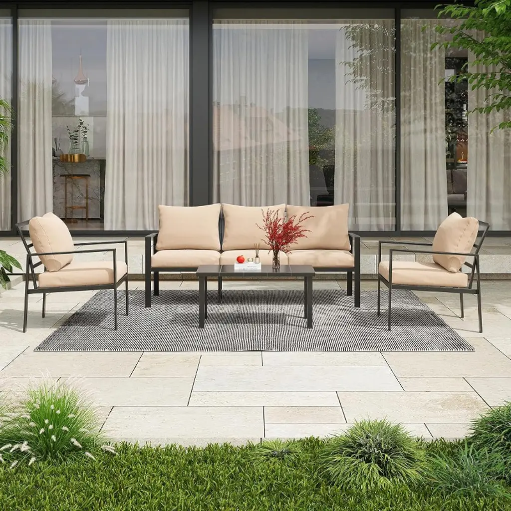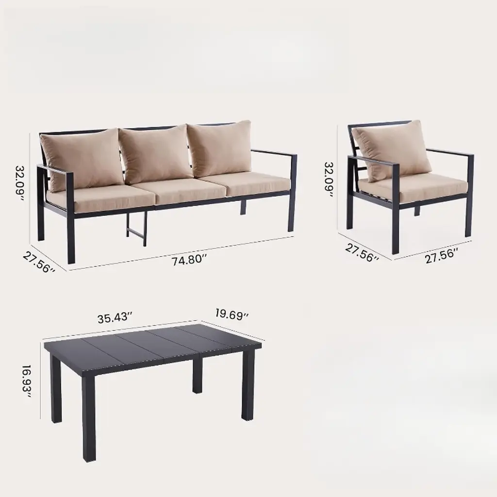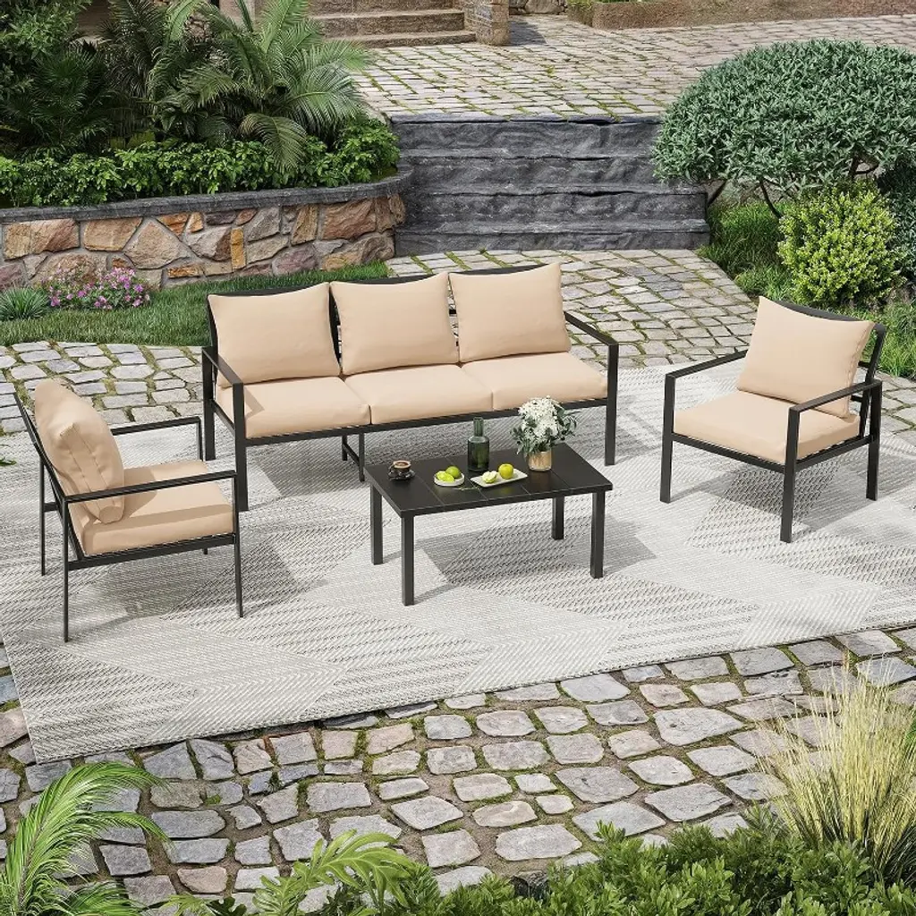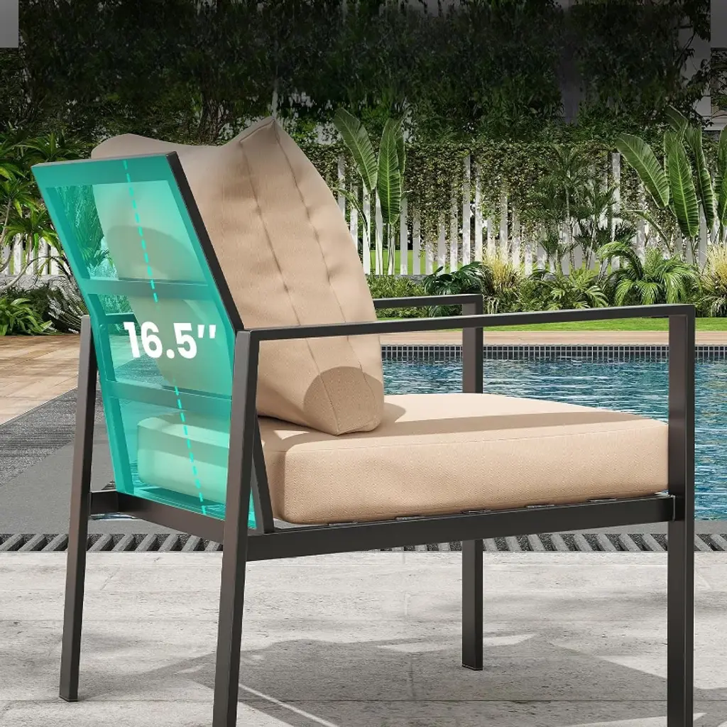 Naysaye Patio Chaise Lounges Metal Conversation Set With Thick Cushions And Coffee Table For Outdoor, Beige, 27.56"*27.56"*32.09"