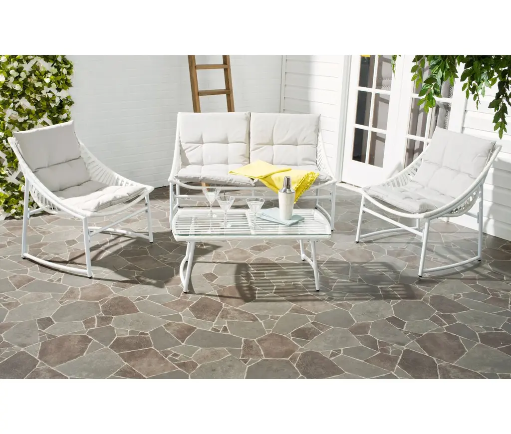 This four-piece outdoor lounge set is made of durable all-weather materials. As stylish as it is practical, this set is an outdoor entertaining essential.