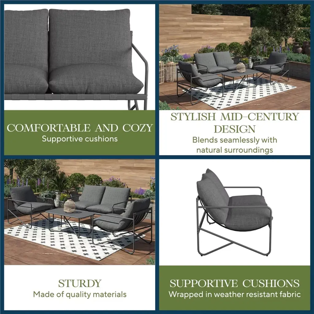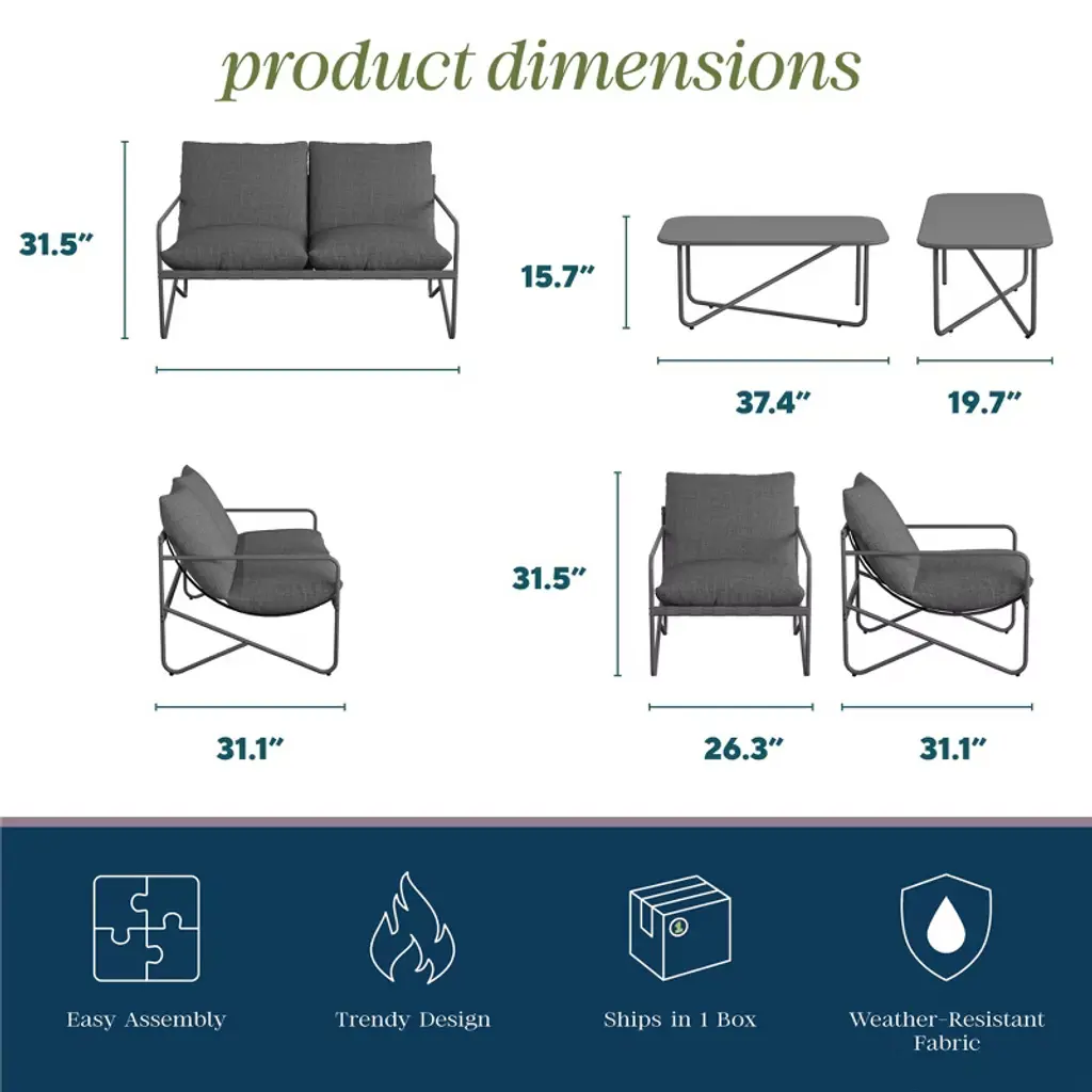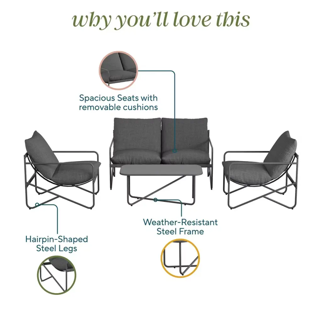 Novogratz Wrenn 4-piece Sling And Cushion Conversation Set, Charcoal