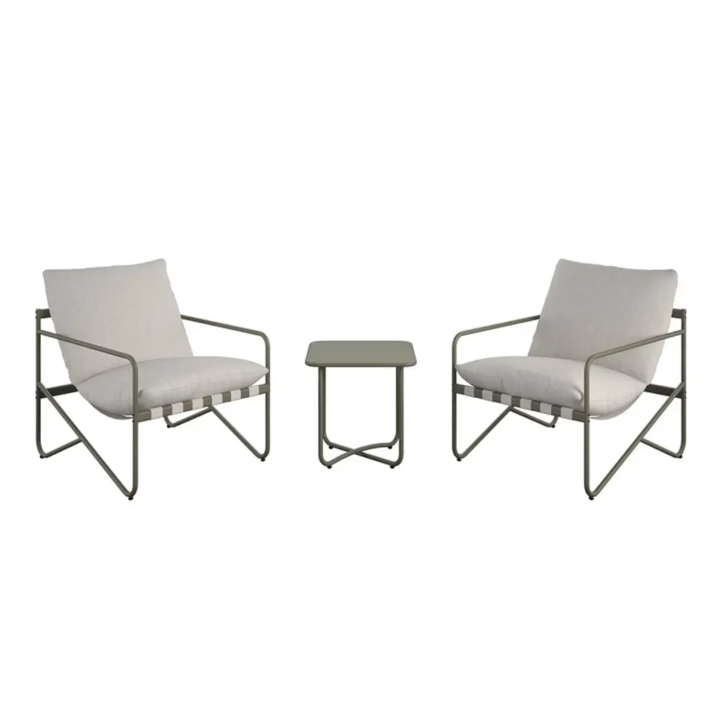 Meet the Wrenn 4-Piece Sling and Cushion Conversation Set by The Novogratz – the perfect ensemble for your outdoor gatherings! This set features an easy-to-assemble steel frame, ensuring durability and stability for all your get-togethers. The comfortable cushions provide a cozy seating experience for up to four people, making it ideal for intimate conversations and relaxed lounging. Wrenn isn't just a conversation set; it's a statement piece. The sleek color adds a feeling of tranquility to your patio or garden, blending seamlessly with the natural surroundings. Whether you're enjoying a morning coffee or an evening chat, Wrenn creates a welcoming and stylish environment. Make every gathering special with Wrenn, and let the conversations flow effortlessly.