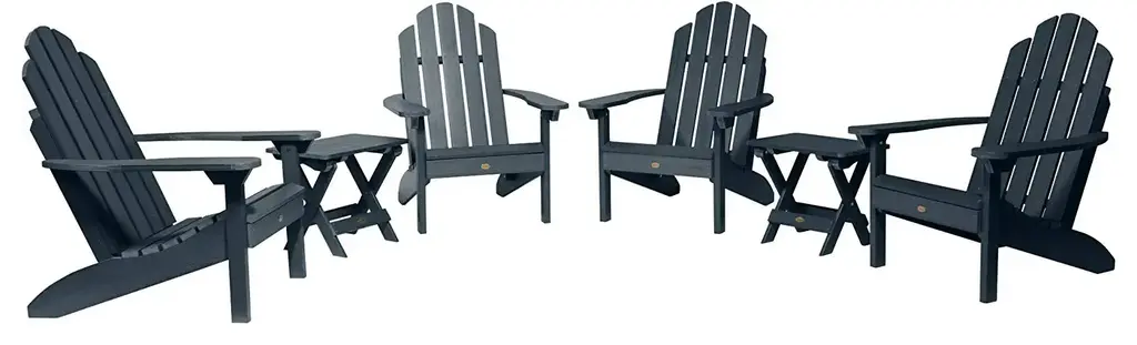 Outdoor Patio Set Of 4 Adirondack Chairs And 2 Folding Tables, Fade Resistant, Federal Blue