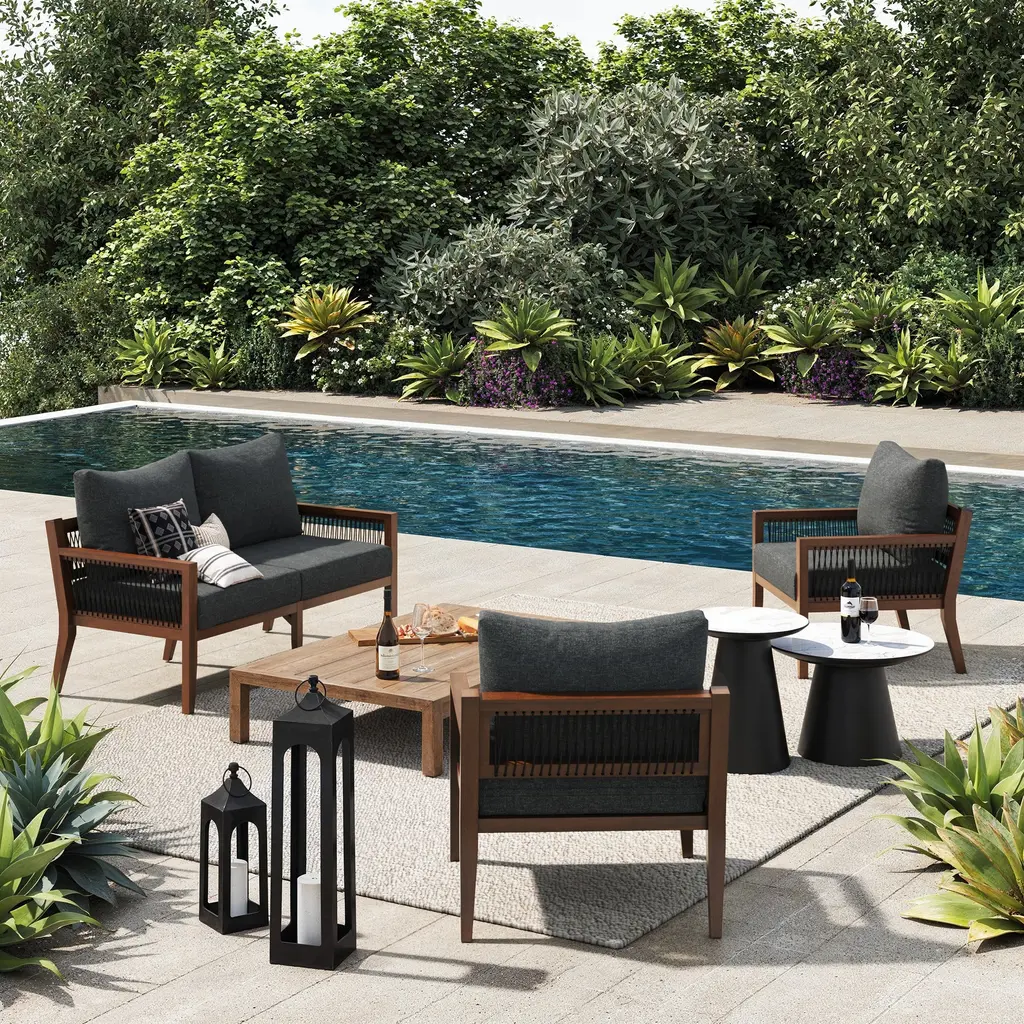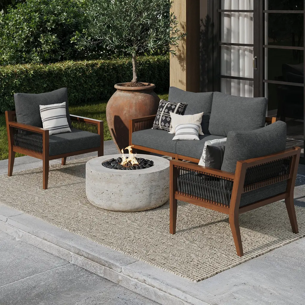 Experience ultimate outdoor comfort with the Freya Loveseat and Chair set! This bohemian-inspired beauty offers unbeatable relaxation. Made with solid acacia wood and easy-to-clean cushion covers, it's built to last. The ergonomic back ensures maximum comfort while the fade and weather-resistant fabric keeps it looking great. Let Freya's plush cushions and sturdy construction transport you to a serene oasis for cozy chats and memorable get-togethers.