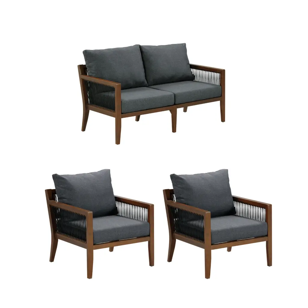 Outdoor Set Patio Loveseat & 2 Chairs Gray
