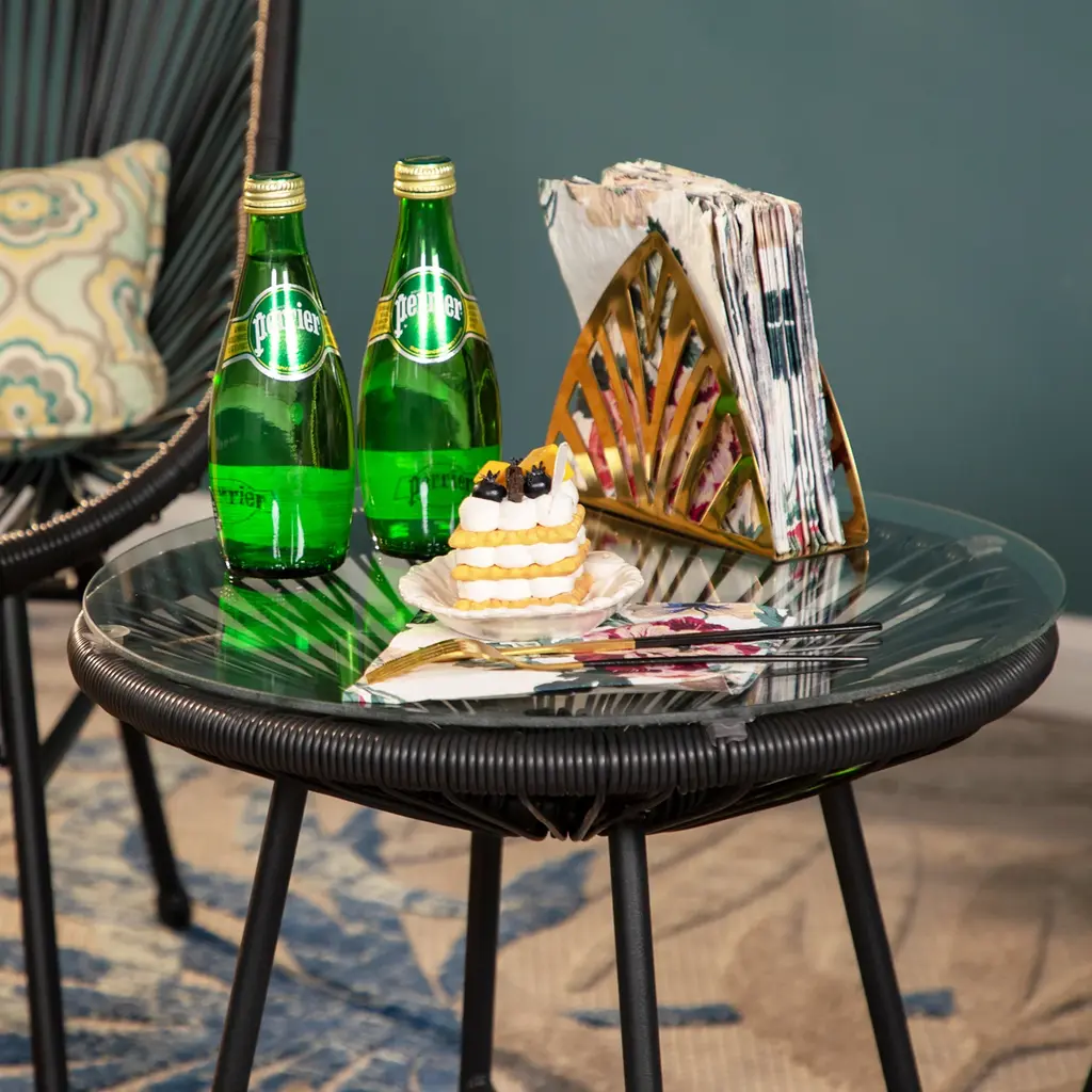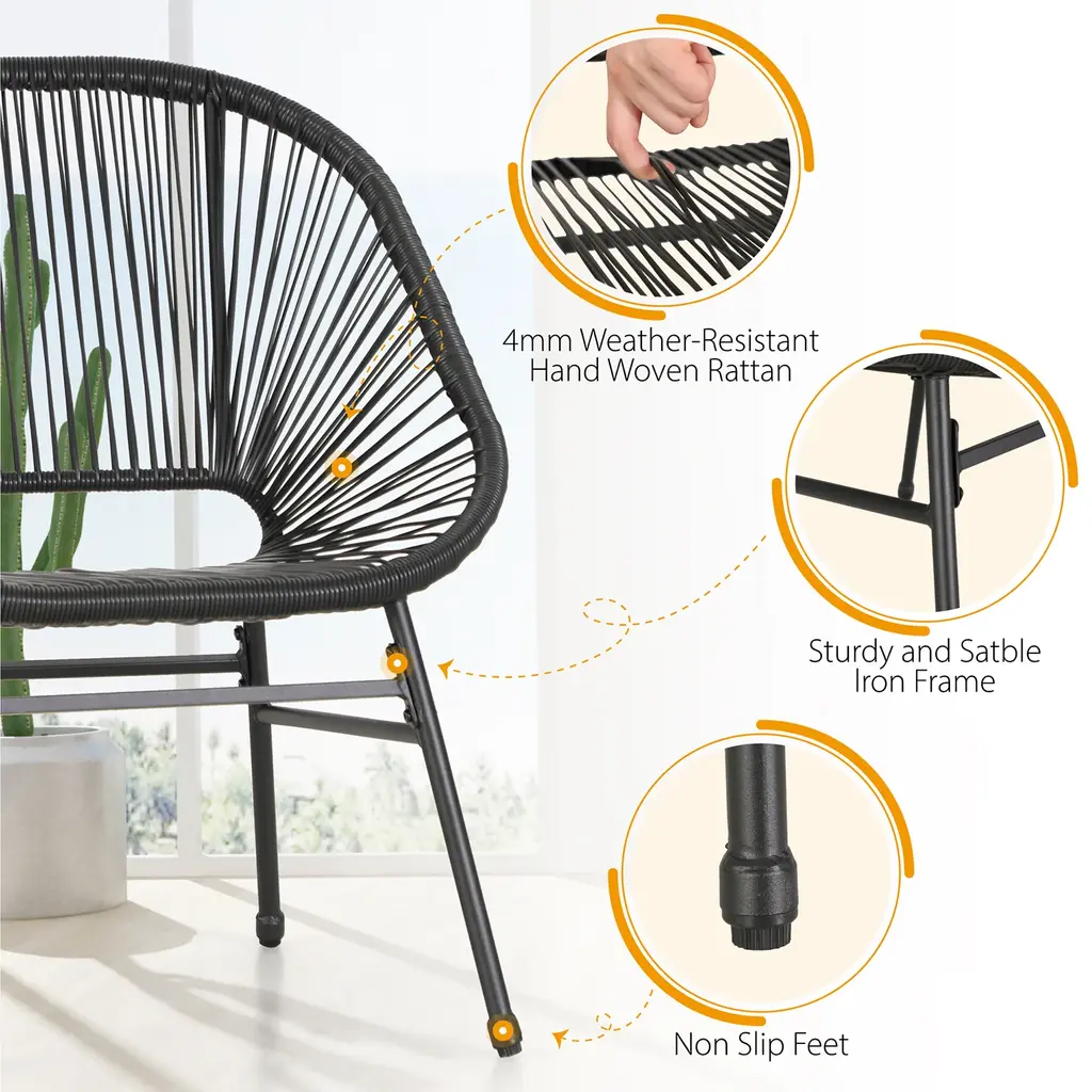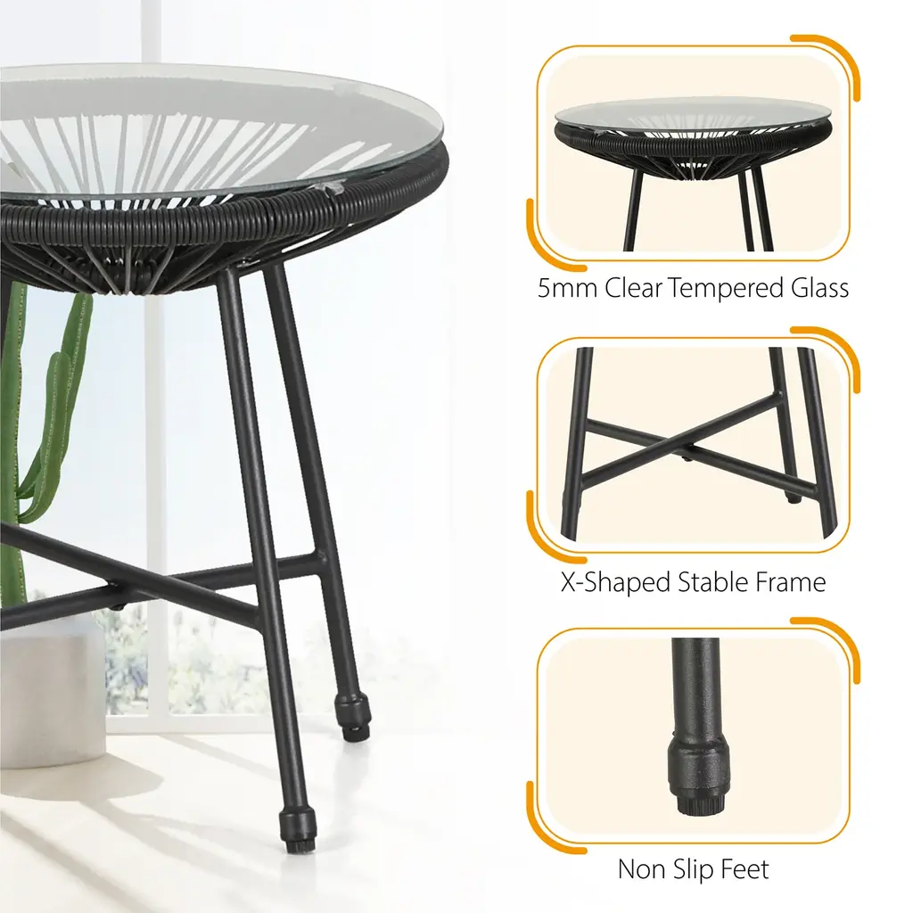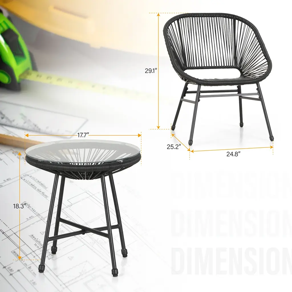 Phi Villa 3-Piece Patio Conversation Set Rope Woven Chairs With Seat Pads & Tempered Glass Table
