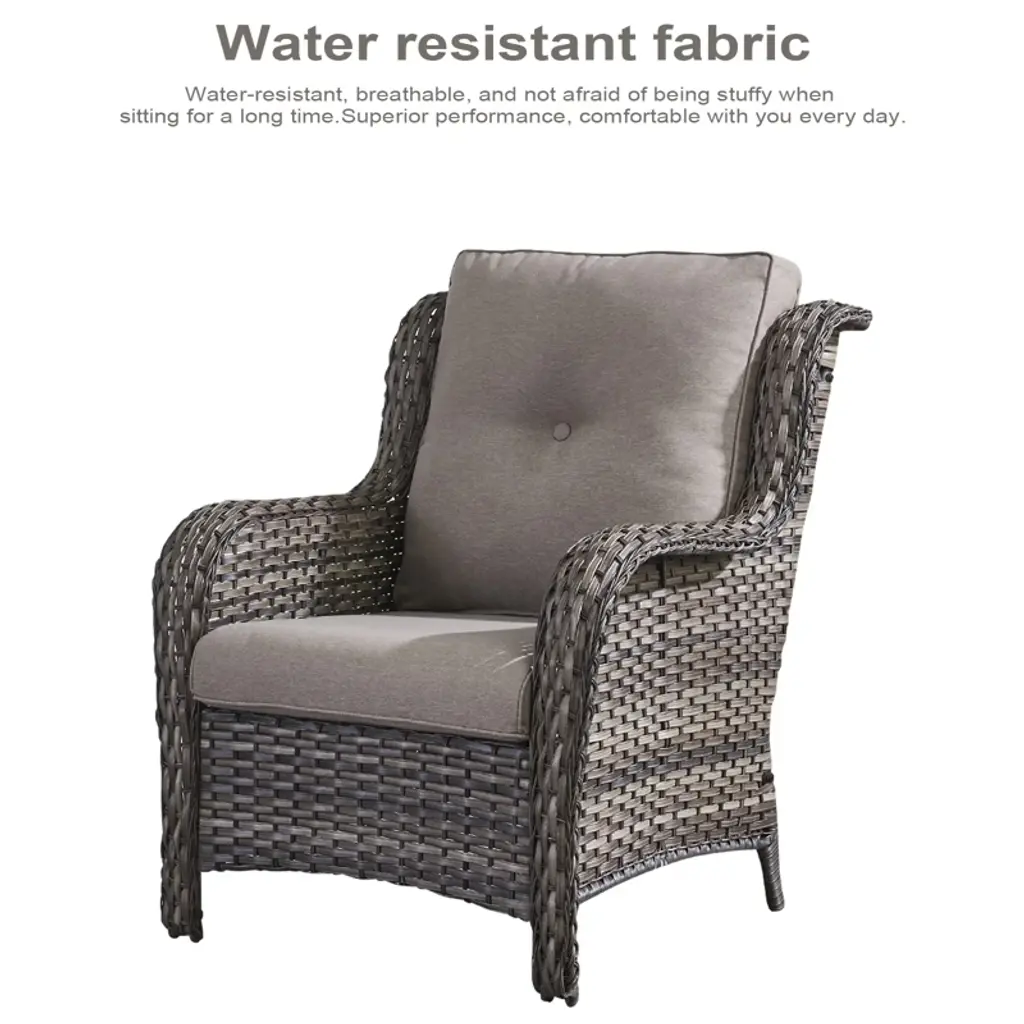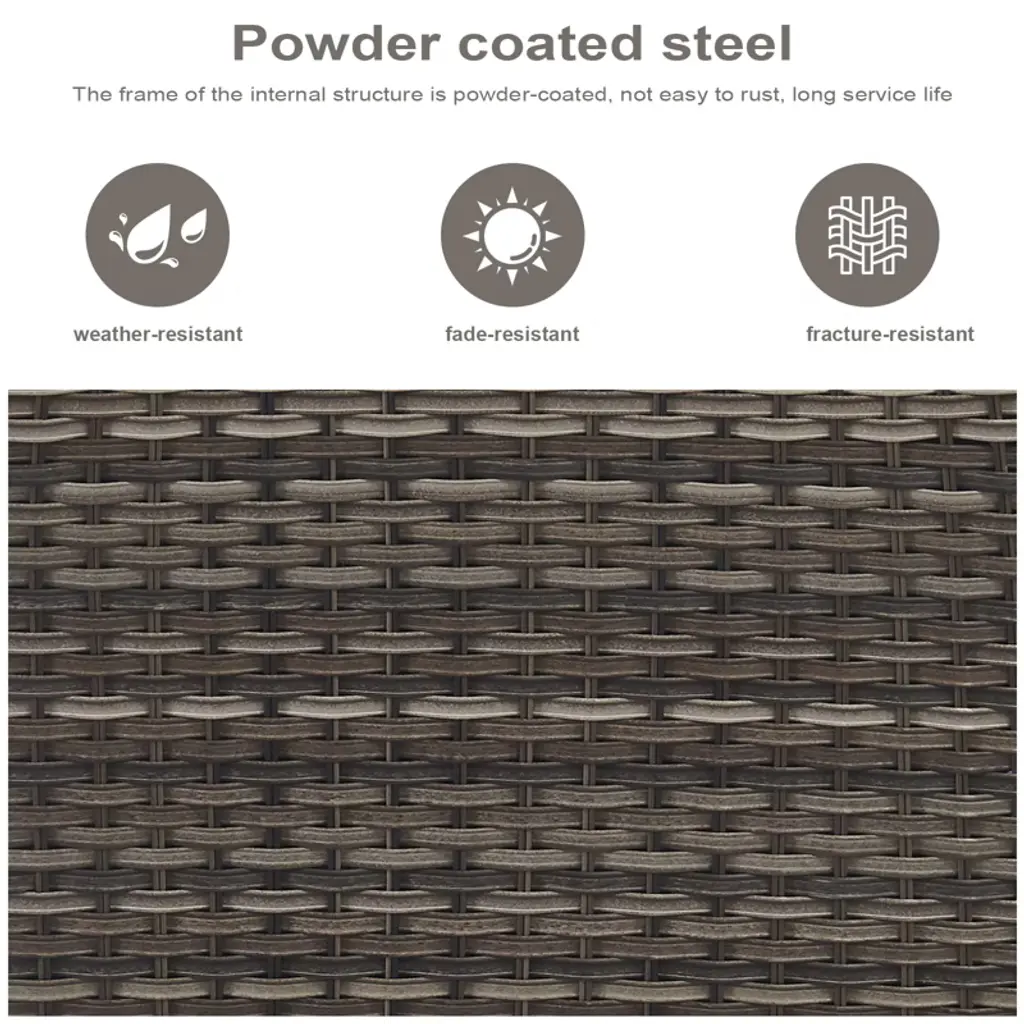 Experience the comfort of this durable and reliable 6-piece patio furniture set. Made of high-quality PE rattan and a sturdy powder-coated steel frame, it is built to withstand a variety of weather conditions, ensuring years of outdoor enjoyment. The fire pit table is capable of releasing 50,000 BTU of heat so you can feel warm even outdoors. Whether you're on a balcony, lawn, garden or poolside, this set is perfect for all outdoor spaces.
