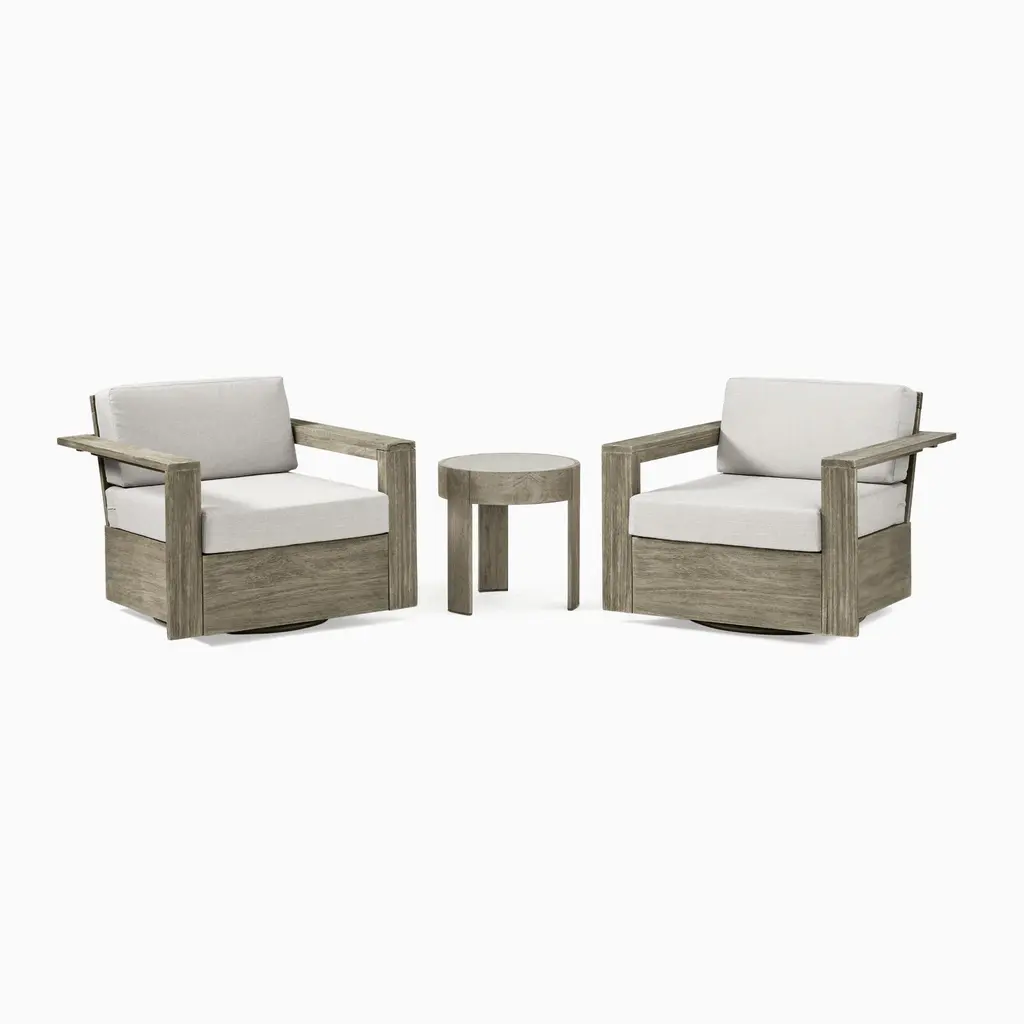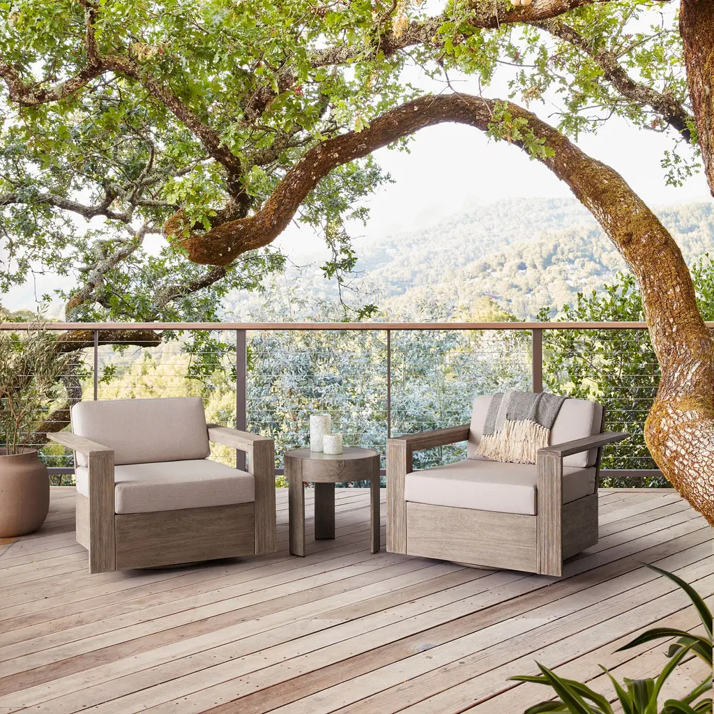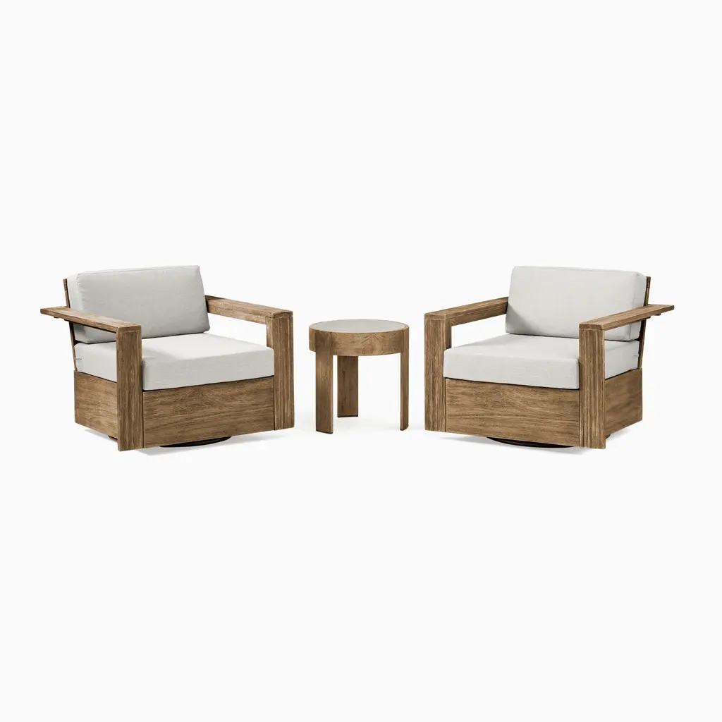 Portside Wood Outdoor Swivel Chairs & Round Side Table Set