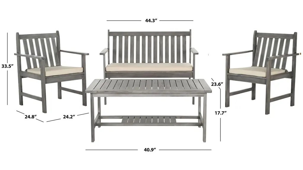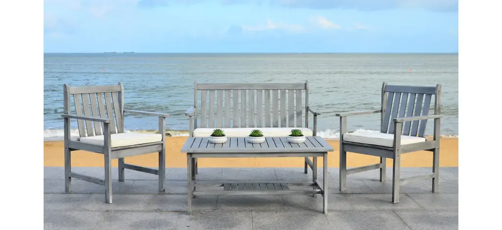 A modern take on classic Shaker furniture, the Richmond 4-pc. Patio Set with traditional and contemporary architecture. Crafted of eco friendly acacia wood in a natural finish, the set comes with comfy all weather seat cushions.