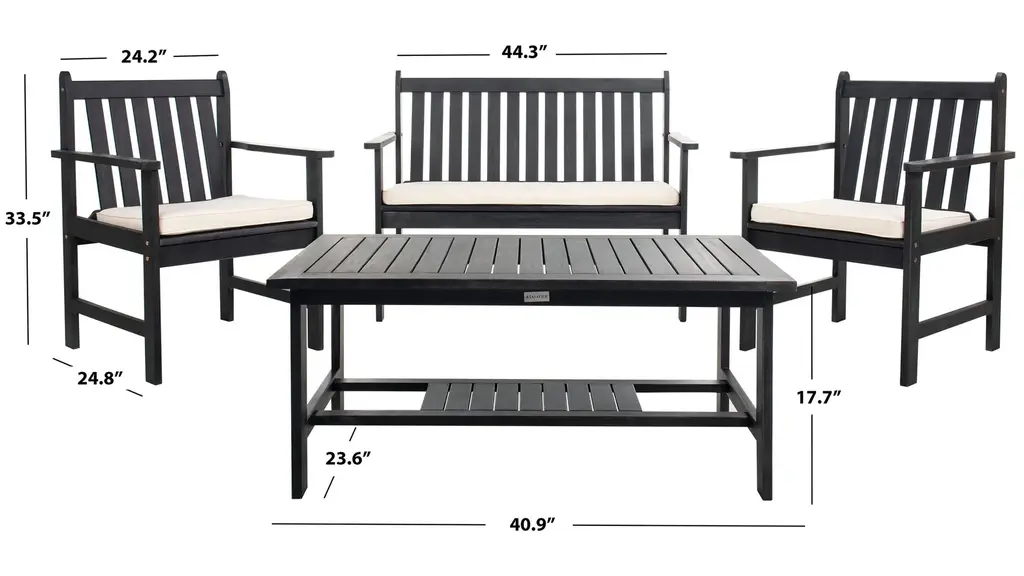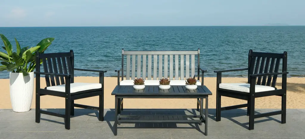 A modern take on classic Shaker furniture, the Richmond 4-pc. Patio Set with traditional and contemporary architecture. Crafted of eco friendly acacia wood in a natural finish, the set comes with comfy all weather seat cushions.