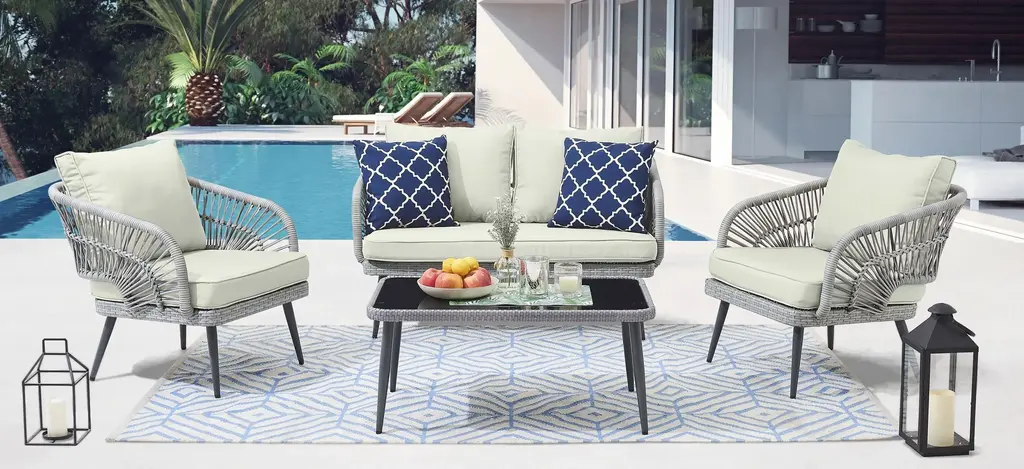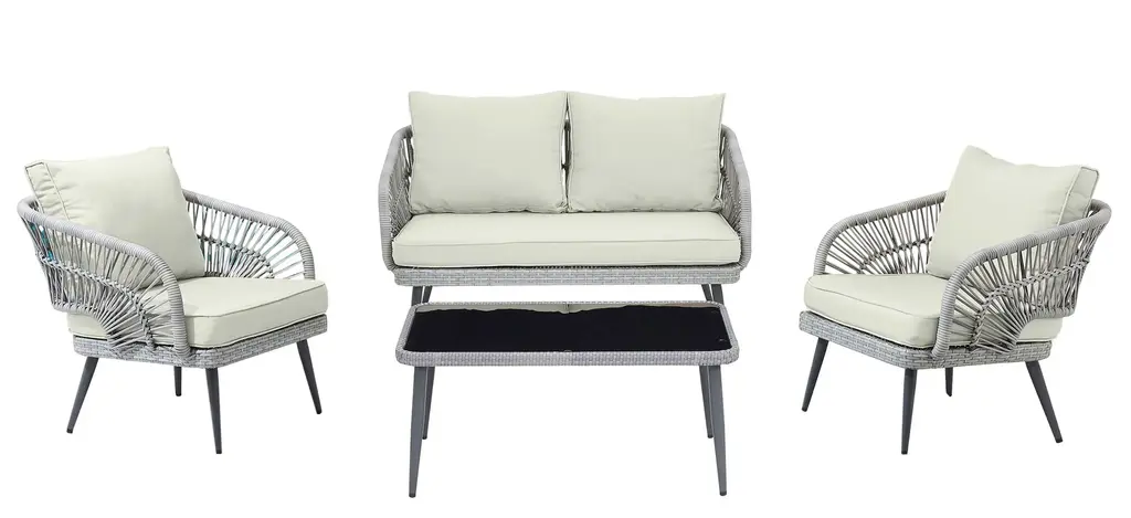 Elevate your outdoor space with the Riviera 4-pc Patio Conversation Set to create the seating area you always wanted to entertain in. Seating is for four and a coffee table makes it easy to display snacks, drinks, or a board game, for all of your guests to enjoy.