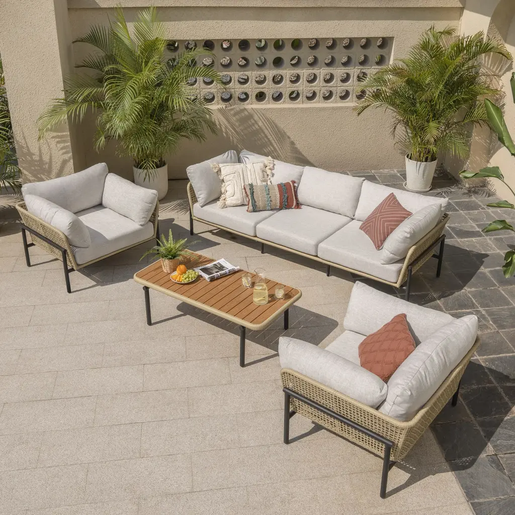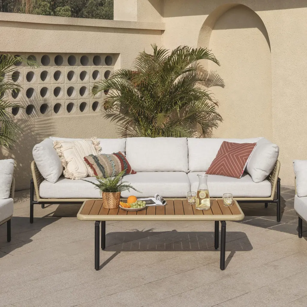 Framed with refined natural elements and plump cushions, Sierra delivers breezy outdoor living with charm and comfort.