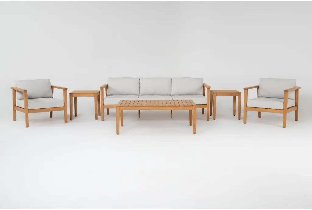 Solana Natural Teak Wood 6 Piece Outdoor Conversation Set