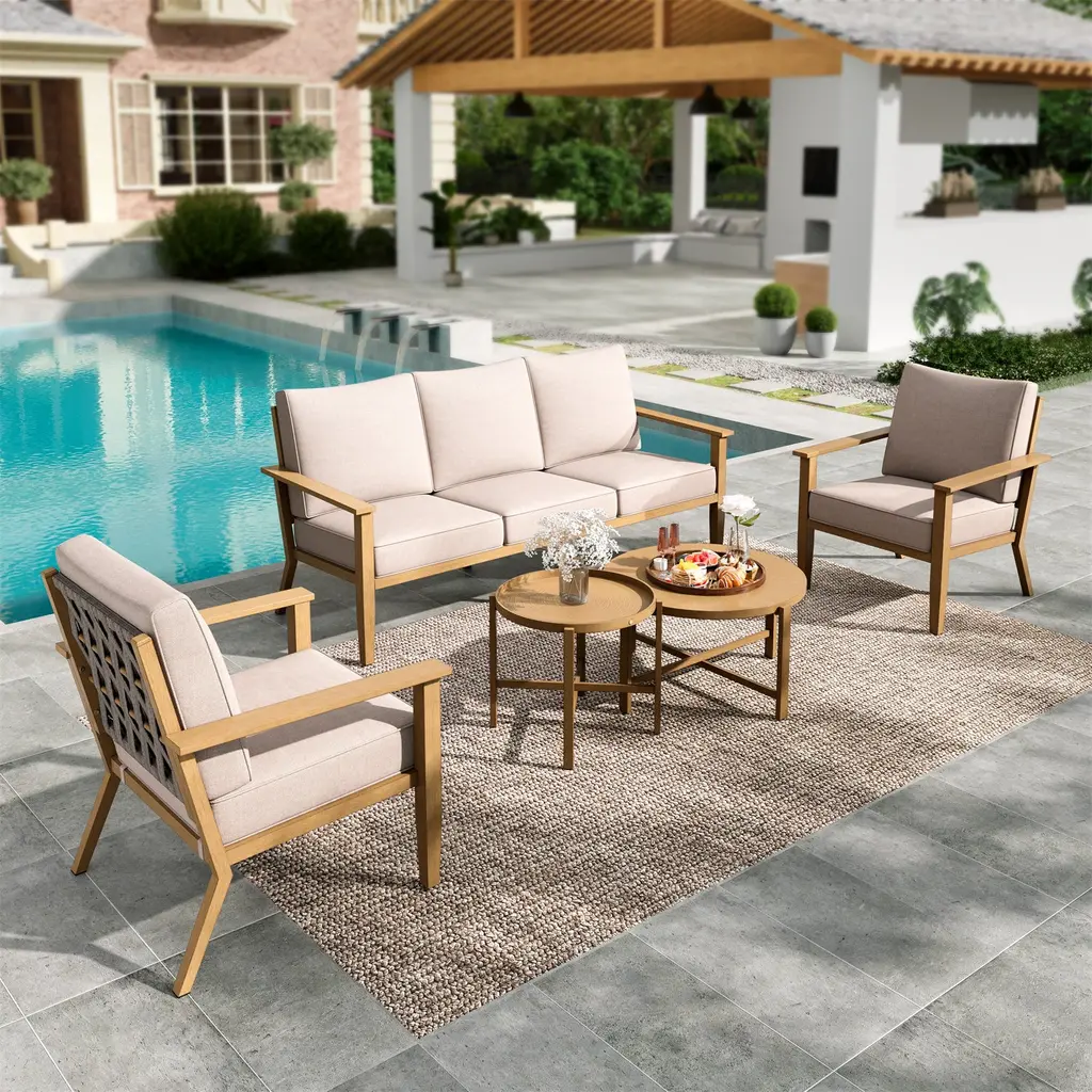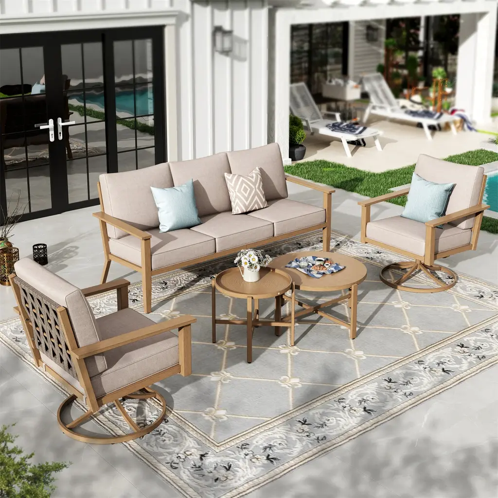 Sophia & William 5 Seat Outdoor Wooden-Like Conversation Set With Coffee Table