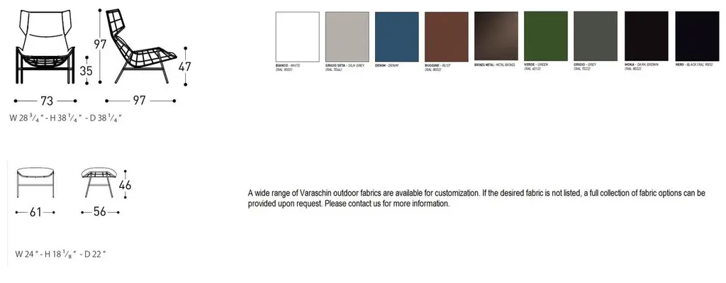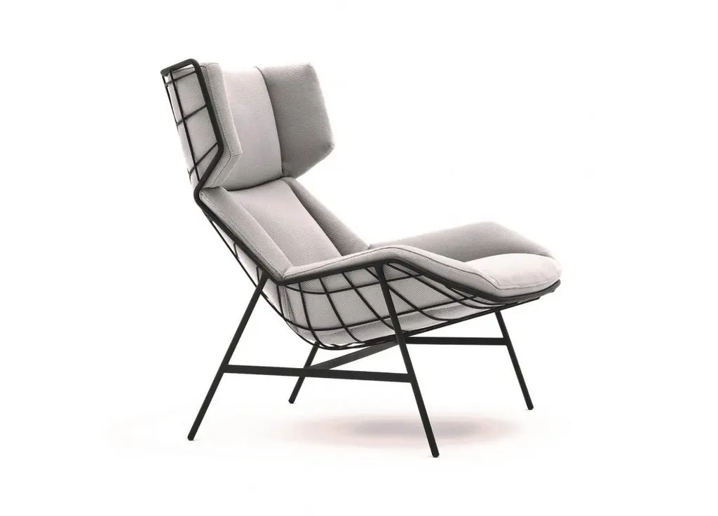 The Bergère Relax Armchair from the SUMMER SET collection stands out with its essential and futuristic design, highlighted by a net structure and customizable metal thread weaving in various colors. Designed for residential and hospitality outdoor settings, including marine areas, this armchair is crafted from powder-coated recyclable steel with special C5M varnishing, making it suitable for use in marine environments. The structure is available in different finishes, and the upholstery can be chosen from various categories of Varaschin outdoor fabrics.The SUMMER SET collection, which includes chairs, armchairs, coffee tables, and poufs, draws inspiration from avant-garde design, showcasing a purity of style. At the core of the collection is the mesh structure, an intricate interweaving of metal wire available in multiple colors. The Bergère Relax Armchair, an authentic icon of the collection, combines contemporary elegance with absolute comfort, serving as a modern reimagining of the historic French seat.Categorized in Seating - Armchairs with armrests, the Bergère Relax Armchair features an upholstered seat and backrest, a 4-leg open metal base, and is suitable for residential, outdoor/garden, contract, and hospitality use. We do our best to expedite production and to ship and deliver product within the listed lead time, however current lead times might be longer due to global shipping backlog and delays. These delays are out of our control and cannot be a reason to cancel an order.