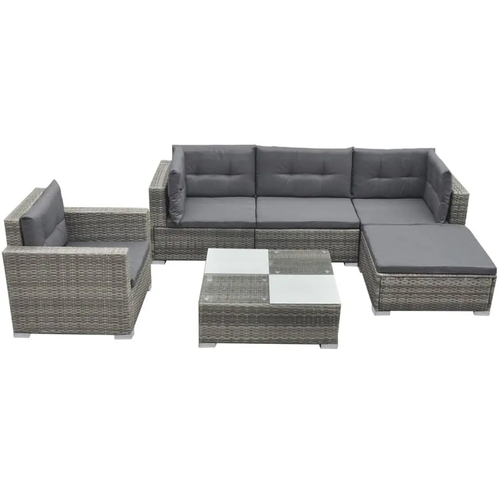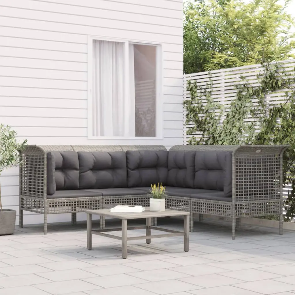 Vidaxl 5 Piece Patio Lounge Set With Cushions Grey Poly Rattan
