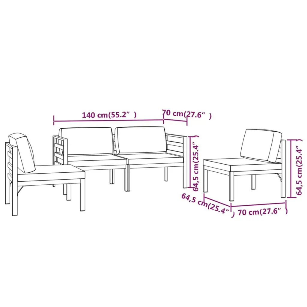 This 4-piece modular garden lounge set is a fab mix of style and practicality for outdoor nooks like patios, balconies, and gardens. With its smart anthracite color and modern vibe, it boosts the look of any outdoor space while offering a comfy lounging spot for four. Modular Design: You can change this lounge set’s setup to fit your needs, so you can switch it up for whatever you fancy. Weather-Resistant: Built with sturdy aluminum, this set is made to handle the outdoors, ensuring it's durable and can take all kinds of weather. Comfort Cushions: The cushions are foam-filled, offering exceptional comfort, making it spot on for lazy afternoons outside. Easy to Maintain: The zips on the cushion covers make cleaning a breeze, so your lounge set stays fresh and welcoming. Stylish Aesthetic: With a matte finish and sleek design, this modern lounge set adds a touch of elegance to your outdoor space.