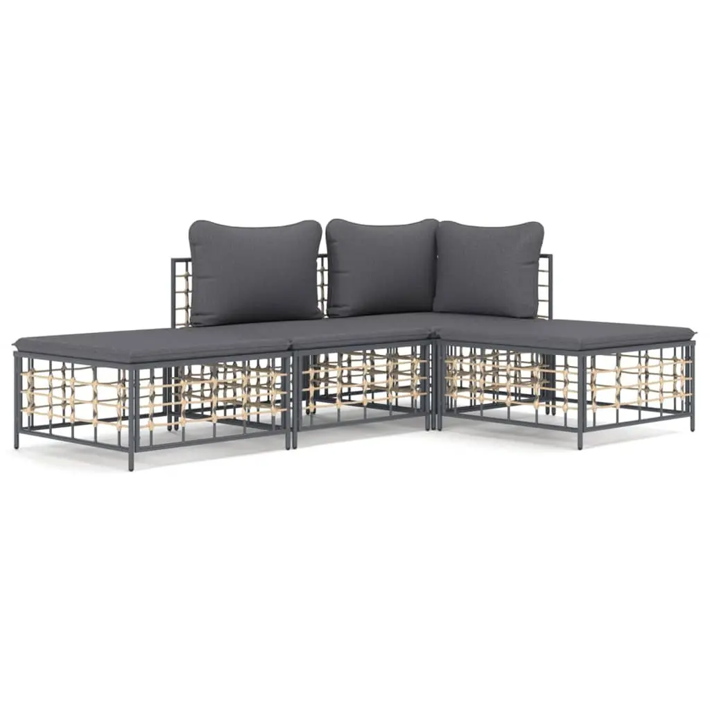 This 5 Piece Garden Lounge Set gives you a fab combo of style and comfort for your outdoor areas, perfect for relaxing or entertaining. Its modular design means you can set it up differently, whether in gardens, patios, or balconies, all while looking classy with that modern anthracite color. Modular Design: Change up the layout to fit your space or needs, letting you personalize it.Comfortable Cushions: Comes with eight soft cushions for the ultimate comfort, perfect for sunny days.Weather Resistant: Made from synthetic poly rattan and powder-coated steel for durability outdoors.Modern Style: The sleek, contemporary look will make your garden or patio really pop.Easy Maintenance: Water-resistant cushions can be easily stored away when it rains, while the durable materials are a breeze to care for.