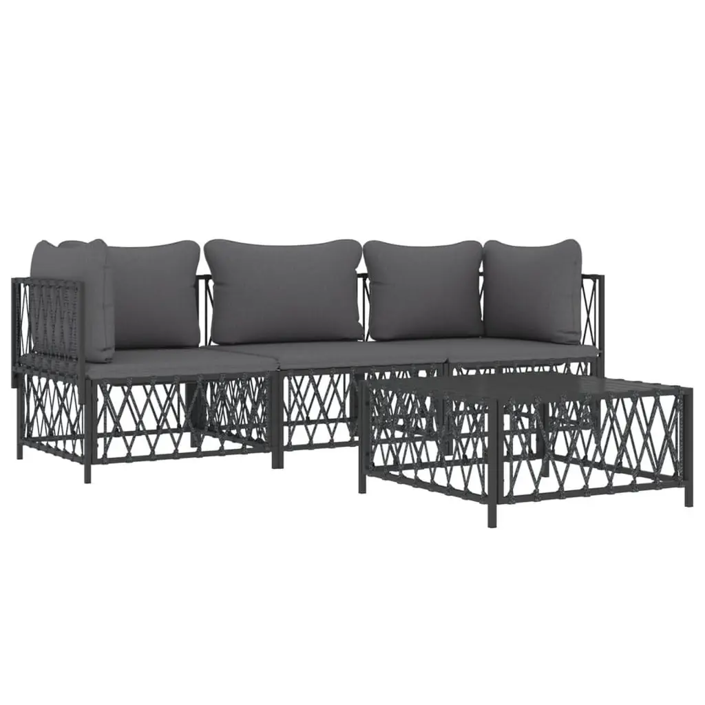This Garden Lounge Set mixes modern style with usefulness, perfect for your patio or balcony. Made from rugged powder-coated steel and woven fabric, it's a classy spot for chilling, entertaining friends, or enjoying quiet mornings with a cup of coffee. Modular Design: Rearrange the lounge set to suit your mood or gathering, whether it’s for chilling or entertaining. It's all about that flexibility.Durable Construction: Sturdy powder-coated steel structure that stands up to the elements, keeping your lounge looking good for ages.Comfort-Centric: Seat and back cushions are designed for a plush experience, turning a regular seat into a cozy spot.Perfect Size: With its moderate size, you’ve got room for everyone without hogging too much space. Great for small get-togethers or family bonding.Versatile Use: This garden lounge set works just as well inside or outside. Its stylish anthracite color blends with any setting, whether that’s a balcony, patio or even a living room.