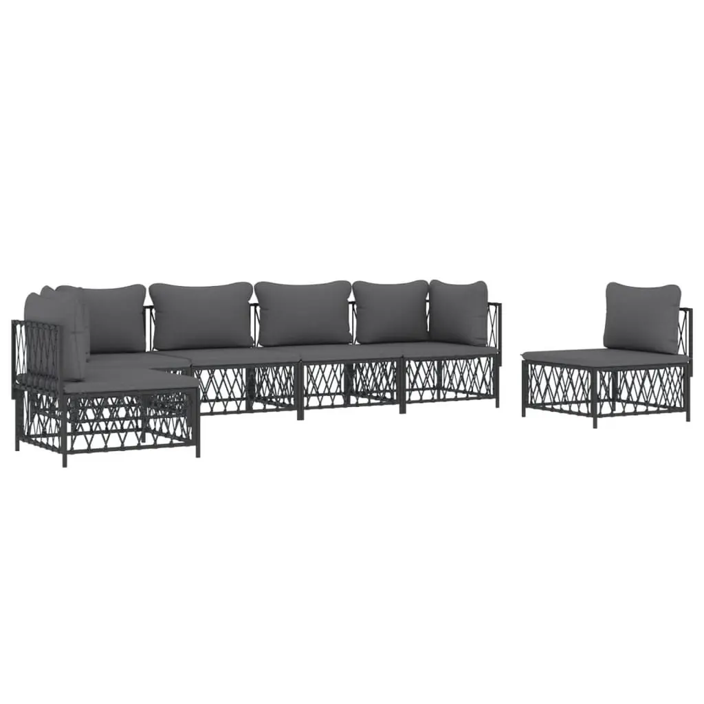 This 6-Piece Garden Lounge Set brings comfort and style to your outdoor living spaces. Its modern anthracite design makes it spot on for patios, balconies, and gardens, creating a cozy yet chic vibe for social events and relaxation. With breathable materials and plush cushions, it’s all about unwinding while enjoying the peace of your surroundings, making it a solid pick for any outdoor space. Modular Flexibility: You can arrange the pieces however you like to fit your outdoor space, whether you want a gathering or just want to relax. This flexibility suits your personal style and helps you maximize your area.Durable Frame: Made from powder-coated steel, the frame is super strong and weather-resistant, so it lasts. It can handle daily outdoor use while keeping its stylish look for a long time.Weather-Resistant Cushions: The seat and back cushions are made from weatherproof fabric, designed to handle various outdoor conditions while still being comfy. Their quick-dry feature means they won’t mind unexpected rain.Modern Aesthetic: The anthracite color and clean lines give this lounge set a contemporary vibe, blending in with nature or adding a touch to your decor. It’s perfect for anyone who loves sleek, simple designs in outdoor furniture.Large Capacity: With seating for 6 people, this lounge set is all about socializing, making it perfect for outdoor get-togethers. Whether it’s coffee in the sun or evening relaxation, it fits large family gatherings like a glove.