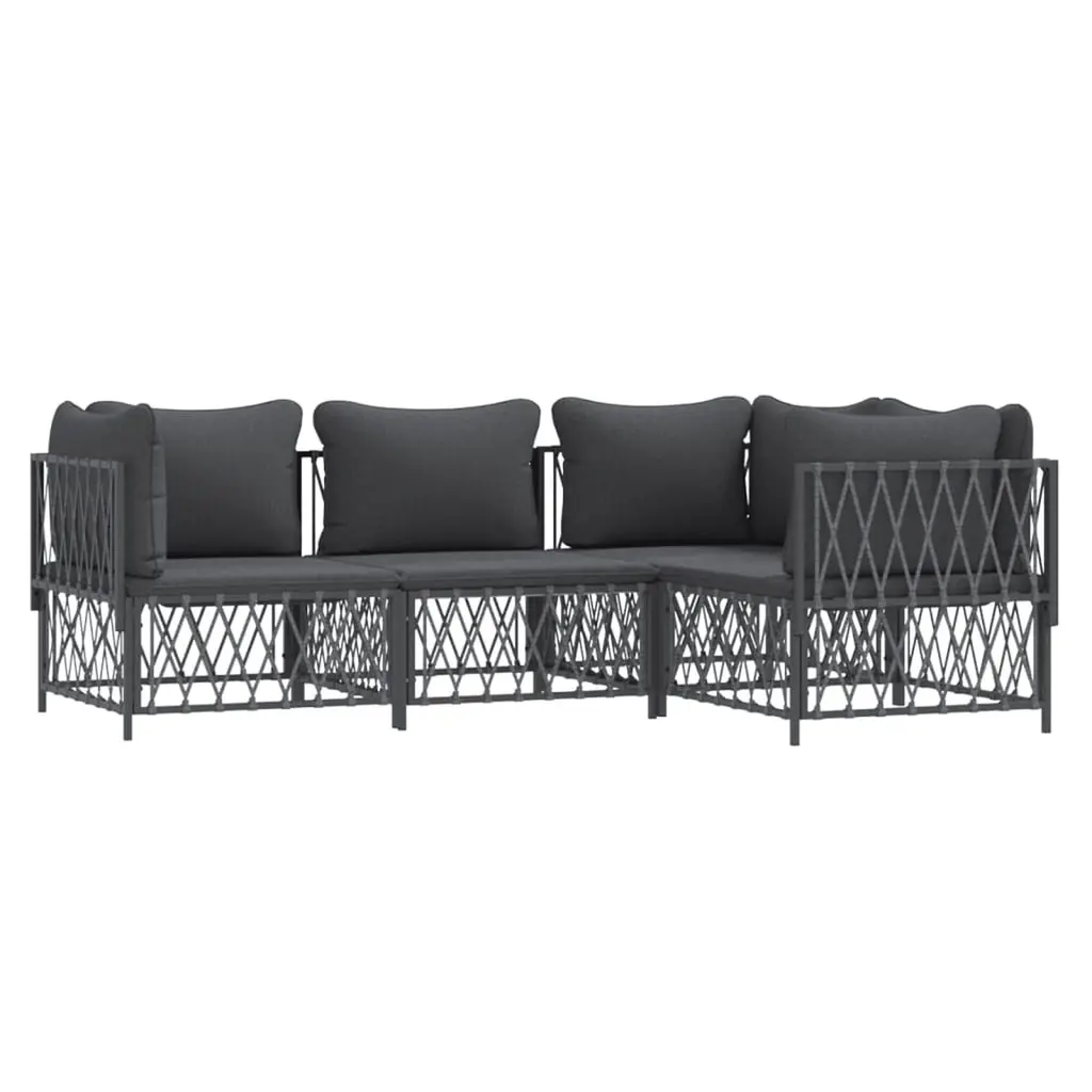 This 4-Piece Modular Garden Lounge Set is all about adding style and comfort to your outdoor hangout. Perfect for social events or just chilling, its sleek anthracite shade fits in with any garden vibe, giving you plenty of seating for your friends. Modular Design: Rearranging this lounge set is a piece of cake, letting you create the perfect setup for your space and taste. Weather-Resistant Cushions: Made from tough materials, these cushions can handle moisture and sun. They stay looking great no matter the weather. Sturdy Structure: The robust steel frames provide a solid base for everyday outdoor use. The powder coating keeps it safe from rust and ensures lasting quality for outdoor fun. Ample Seating Capacity: Designed for up to 4 people, this lounge set is great for chill time with friends or family. Everyone can relax and enjoy the summer sun or cozy evenings outside. Easy Maintenance: Keeping it clean and protected is simple. The cushions come with zips, so you can easily remove them for a wash whenever needed.