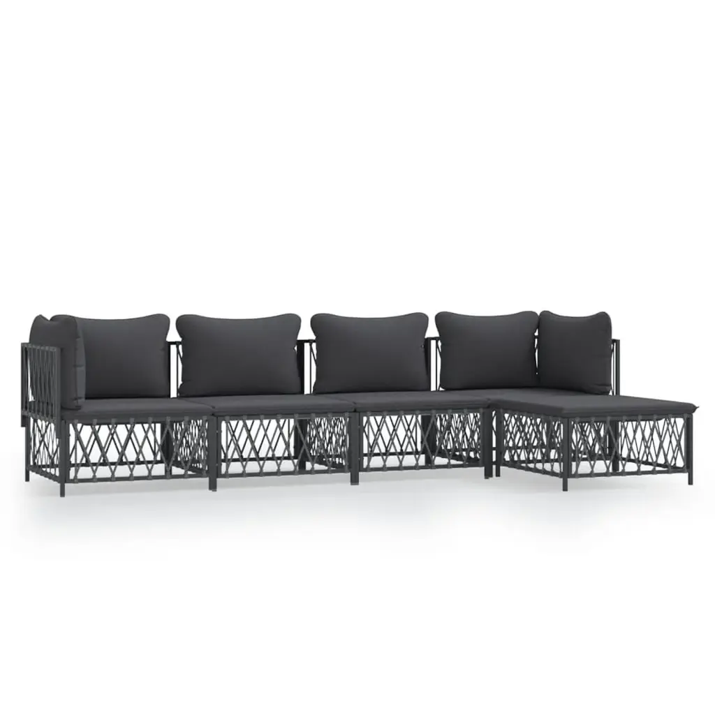 This trendy 7-piece garden lounge set is made for roomy outdoor relaxation, with a cool anthracite finish that fits nicely in any modern patio or balcony. Its modular design lets you arrange it however you like, perfect for entertaining friends or enjoying a quiet cup of coffee in the sun. Comfortable seating with soft upholstery for easy relaxation after a long day, perfect for casual hangouts.Durable, weatherproof materials mean you can use it all season long without worrying about wear and tear.Modular pieces can be rearranged to suit your needs, whether for parties or a peaceful coffee break.Sleek, elegant textures and lines complement the modern feel of your outdoor space, boosting its appeal.Includes 9 back cushions and 7 seat cushions with hidden zippers for easy cleaning, keeping your lounge set fresh and welcoming.