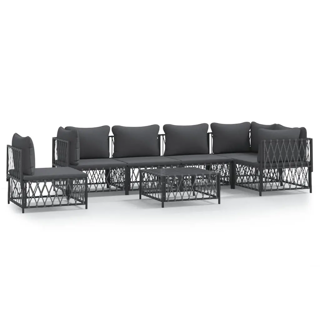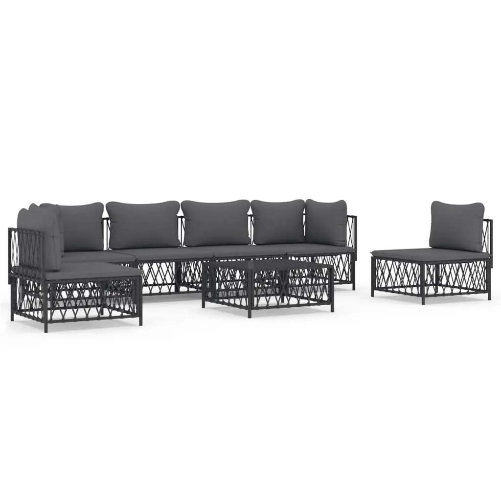 Vidaxl Garden Lounge Set Anthracite Poly Rattan, Powder-Coated Steel, Fabric