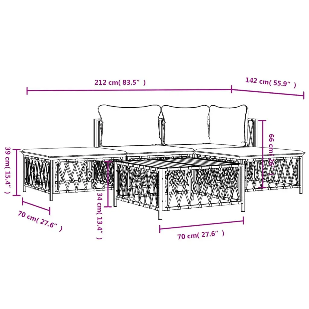 This 5-Piece Modular Garden Lounge Set is the perfect way to jazz up your outdoor spaces. Great for gatherings or chilling out, this set combines function with modern looks, creating a welcoming vibe that fits balconies, conservatories, or sunrooms. Modular Design: This garden lounge set lets you rearrange the bits however you want for your space. It makes it really adaptable for different outdoor layouts.Durability: Built with a solid powder-coated steel frame, this set is made to take on the weather while giving stable support for lounging. The durable coating helps with rust and peeling, so it lasts longer.Weather-Resistant Cushions: With outdoor cushions made from tough materials, this set makes sure you get comfort without sacrificing style. These cushions are made to handle outdoor conditions while keeping it cozy.Easy Upkeep: The set’s design makes it a breeze to clean and look after, so it stays looking fresh for years. Just wipe it down with a damp cloth to keep it looking good.Comfy Seating: The generous seat size fits up to five people, perfect for having guests over or just chilling outside. Each piece is made for lounging, complete with cushy backrest pillows.