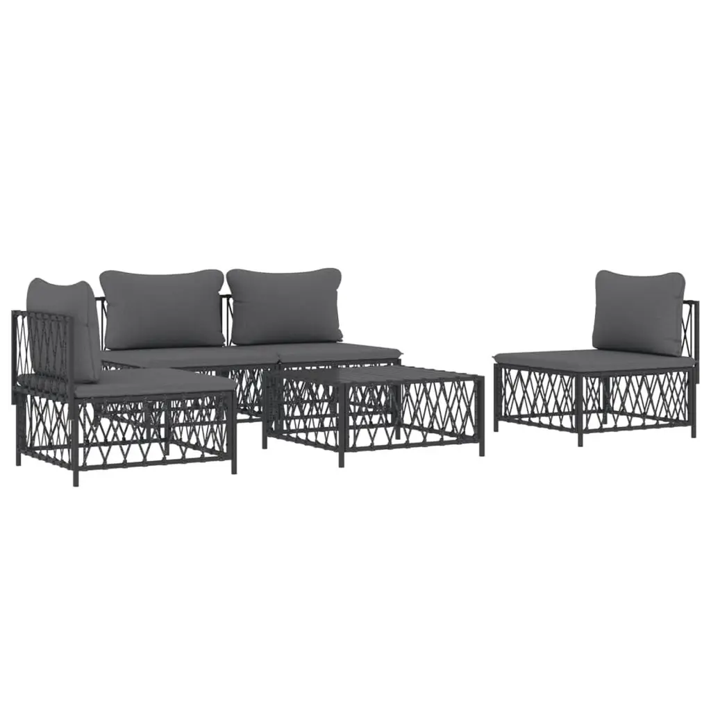 This 5-piece Anthracite Garden Lounge Set is the pinnacle of modern outdoor furniture, made to boost your garden or patio vibe. With sleek lines and a classy color palette, it creates a chilled-out atmosphere, perfect for afternoon tea or evening hangs with family and friends. Its modular design lets you arrange it however you like to fit your space. Modular Design: You can adjust the layout to suit your outdoor space perfectly. Rearranging is dead easy, so you can set it up for any occasion.Robust Material: Made from powder-coated steel, this lounge set has great durability for withstanding outdoor elements while looking good. It’s built sturdy to handle daily outdoor use.Thick Cushions: Each seat has thick cushions wrapped in weather-resistant fabric, making it cozy for reading a book or having people over. You can sit comfortably for hours without any hassle.Easy Maintenance: The cushions have zippers for easy removal and cleaning, keeping your lounge set looking fresh and inviting. Just unzip and you’re good to go!Stylish Aesthetic: The Anthracite color adds a modern touch that enhances any outdoor decor, blending with nature while giving it a stylish edge.