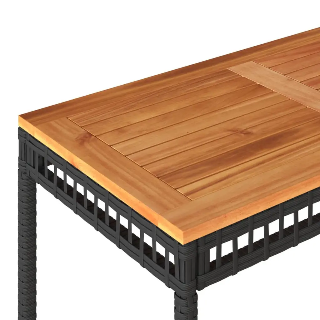 This 4-piece garden lounge set is a great mix of style and usability for enjoying the outdoors. It has a modern look that’s perfect for socializing, relaxing, or cozy nights under the stars. 【Durable Construction】 The lounge set is made from top-quality UV-resistant Poly Rattan that can handle the weather, making it last and look good all year round. The solid acacia wood top adds a touch of class, mixing natural beauty with the toughness needed for the outdoors.【Comfortable Cushions】 Each piece comes with plush seat and back cushions filled with soft polyester. These cushions have zippers for easy removal and cleaning, so you can keep them looking fresh for your guests.【Versatile Arrangement】 With its flexible design, the set can be moved around to fit your outdoor space, whether on a balcony, terrace, or big backyard. This adaptability makes it perfect for any layout, ensuring comfort wherever it goes.【Easy Care】 Keeping this lounge set in good shape is simple; just cover it when not in use or wipe down with a damp cloth to get rid of dirt. The good finish means it can handle the occasional splash or rain without losing its looks.【Generous Seating Capacity】 Designed to fit up to 4 people comfortably, this set is great for socializing and outdoor fun, perfect for barbecues or casual get-togethers with friends and family.