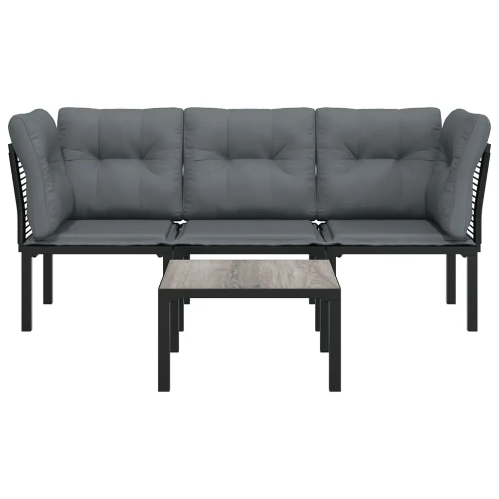 This 4-piece garden lounge set is a fab mix of style and function, perfect for creating a comfy outdoor spot or sprucing up your garden relaxation area. Made from top-quality poly rattan, this set has a smart black and grey style that fits just about anywhere, making it great for chilling with friends and family on a sunny day. Modular Design: The garden lounge set's modular style lets you configure it in various ways based on your space needs, making sure it fits in perfectly on your balcony or in your garden.Durable Materials: Built with high-quality poly rattan and powder-coated steel, this set stands up to outdoor conditions while keeping its charm, so it lasts through the seasons without losing style.Comfortable Seating Experience: With plush outdoor cushions zipped for easy cleaning, the set offers a luxurious lounging vibe, ideal for lazy afternoons or evening hangs.Stylish Aesthetic: The contemporary design of this lounge set makes a statement and blends effortlessly into your current outdoor decor, boosting the overall look of your space.Easy to Maintain: Keeping your lounge set in good shape is hassle-free; just steer clear of harsh chemicals and use a cover during bad weather to keep its sleek surfaces protected.