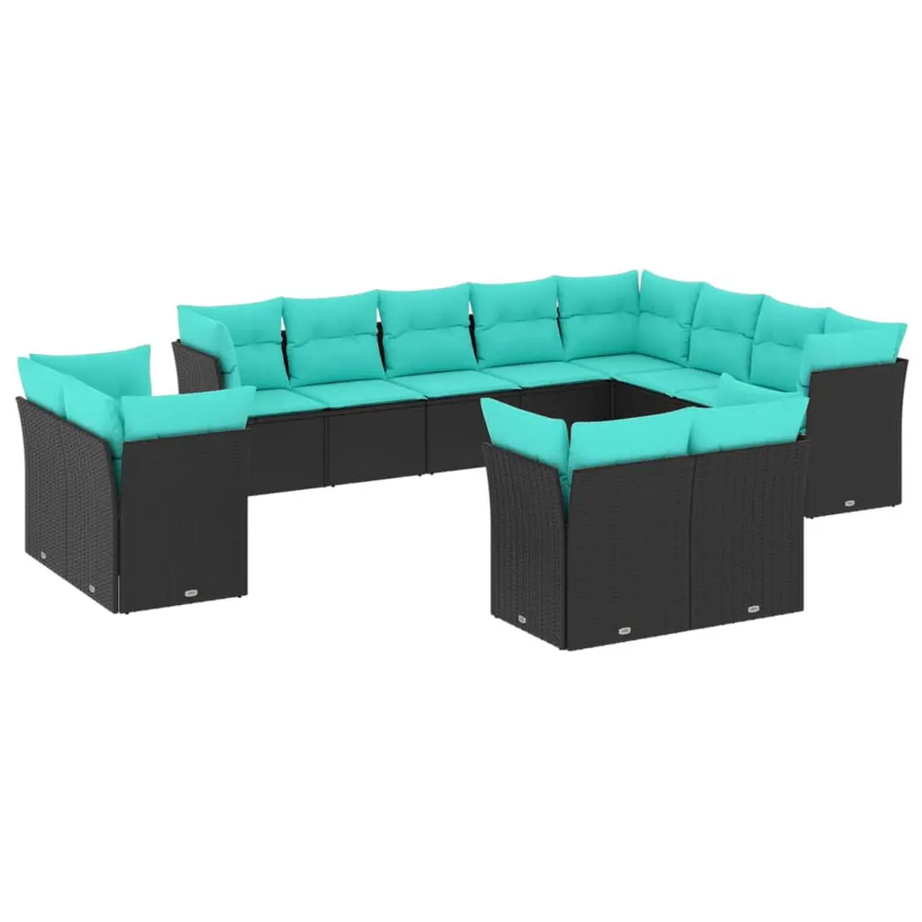 This vidaXL 13 Piece Garden Lounge Set is a perfect mix of function and trendy style, made to boost your outdoor hangout spots. It's big enough for 13 people, so it’s perfect for get-togethers or quiet evenings under the stars, making it comfy and welcoming with chic water blue touches against a classic black frame. Versatile Configuration: The modular design of this garden lounge set lets you arrange the pieces—four corner sofas and nine middle sofas—any way you fancy, making it fit for any outdoor spot, from big patios to snug balconies. Weather-Resistant Materials: Made from quality PE rattan and strong powder-coated steel frames, this set can take on the outdoors. It's built to resist water and weather, so it's a solid investment for years to come, keeping you worry-free during the rainy days. Comfortable Seating: Each sofa comes with soft cushions filled with polyester fiberfill, offering comfy seating for you and your guests. The cushions have zippers, making them easy to take off and clean—maintenance is a breeze. Stylish Design: The modern look of the lounge set, with its smooth feel and chic arrangement, elevates any outdoor decor. The sleek black and water blue color combo is a trendy addition to your garden or outdoor area, perfect for a modern vibe. Easy Maintenance: The materials are made for everyday outdoor use, allowing for quick cleaning with just a mild soap solution. Proper care, like using waterproof covers during harsh weather, helps keep your furniture lasting longer.