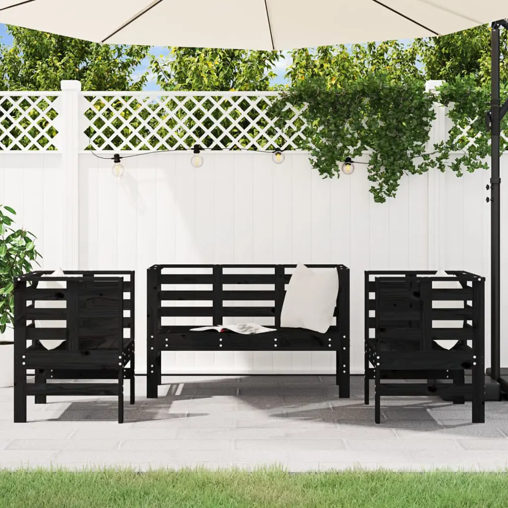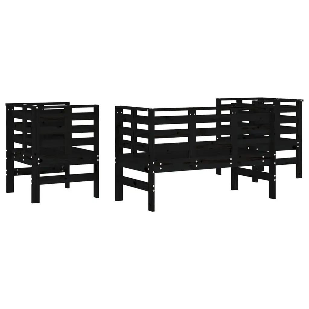 Vidaxl Garden Lounge Set Black Solid Pine Wood Medium Durable