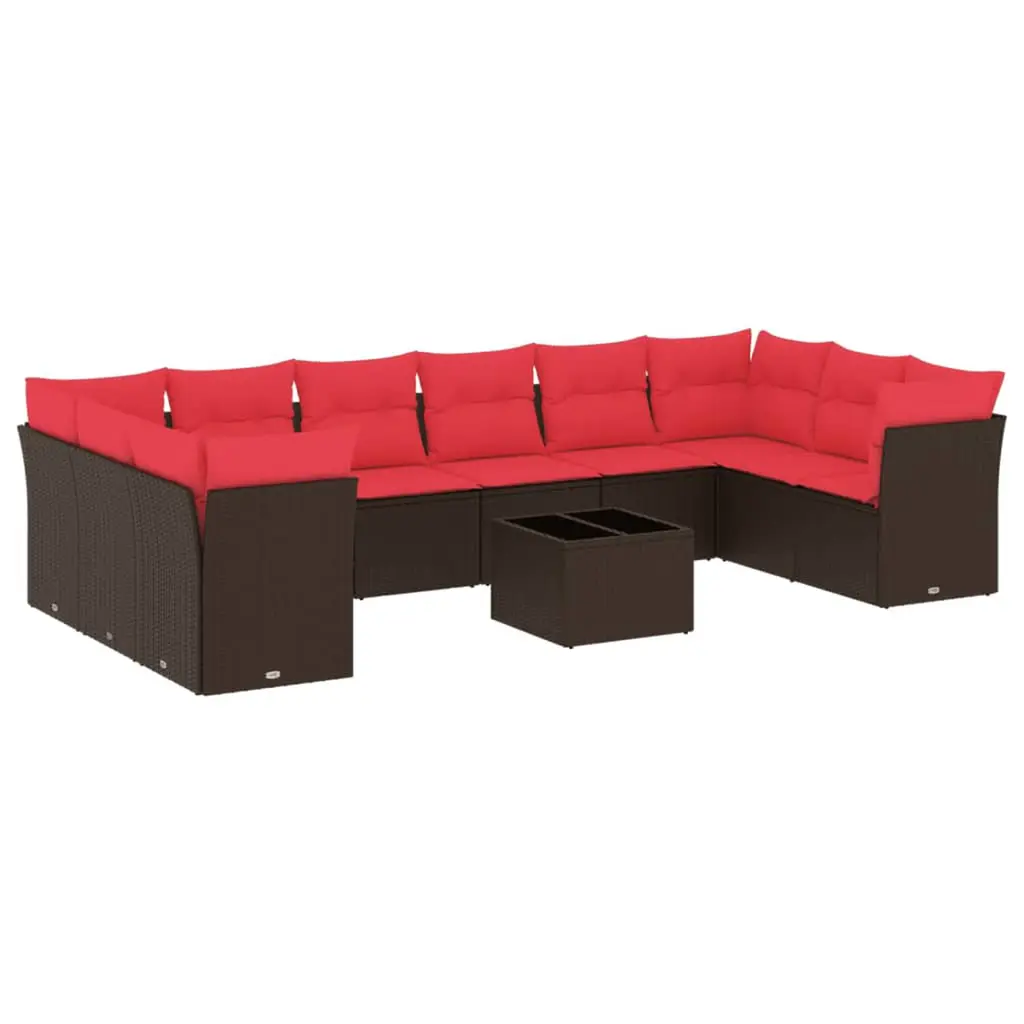 This 12 Piece Garden Lounge Set is all about style and comfort, made for those lazy outdoor days. It’s got a smart mix of poly rattan and powder-coated steel, giving a modern vibe that looks great on any balcony or outdoor area. The modular design means you can set it up however suits you, whether you're having a chill afternoon or a party.Made from weather-resistant stuff, like PE rattan, this set stands up to all kinds of outdoor weather while staying stylish.Every seat comes with plush cushions that amp up the comfort and have a zip so you can clean them easily.Spacious enough to fit 10 people, it’s great for family gatherings, get-togethers, or just soaking up the sun with pals.The powder-coated steel frame makes it sturdy, staying strong even with regular use.