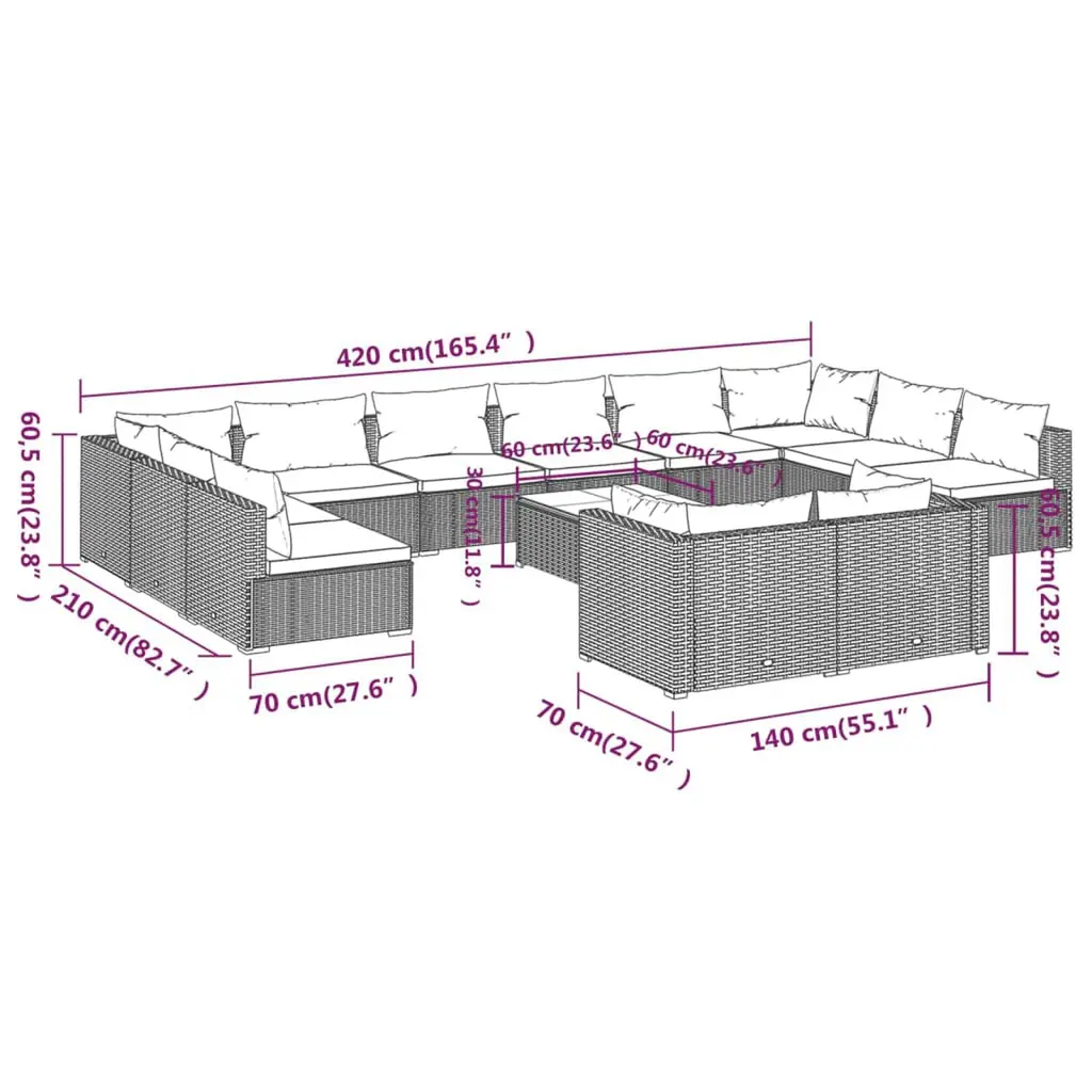 This 13 Piece Garden Lounge Set with Cushions is the perfect mix of style and comfort for lounging outside. Made from weather-resistant materials, it has a modern look with smooth lines and surfaces, making it great for get-togethers or quiet nights on the balcony. Waterproof PE rattan construction means it lasts longer and is easy to care for, making it perfect for outdoor use. The modular design lets you shift the seating arrangement around to suit your space, whether it’s a snug balcony or a bigger patio. With comfy seat cushions that are removable for easy cleaning, you won't have to worry too much. This set is made for up to 12 people, so it’s ideal for parties with family and friends. It features a stylish mix of brown and cinnamon red, adding a classy feel to any outdoor setting.