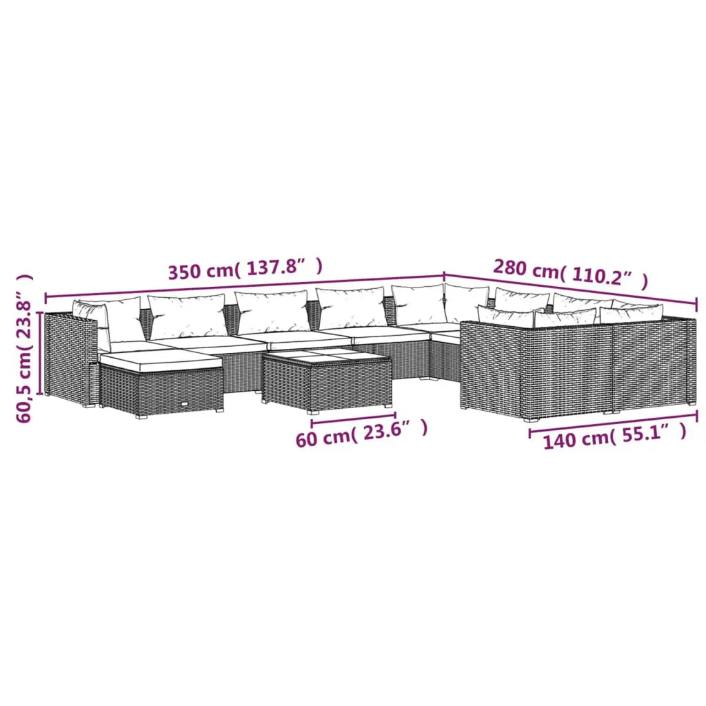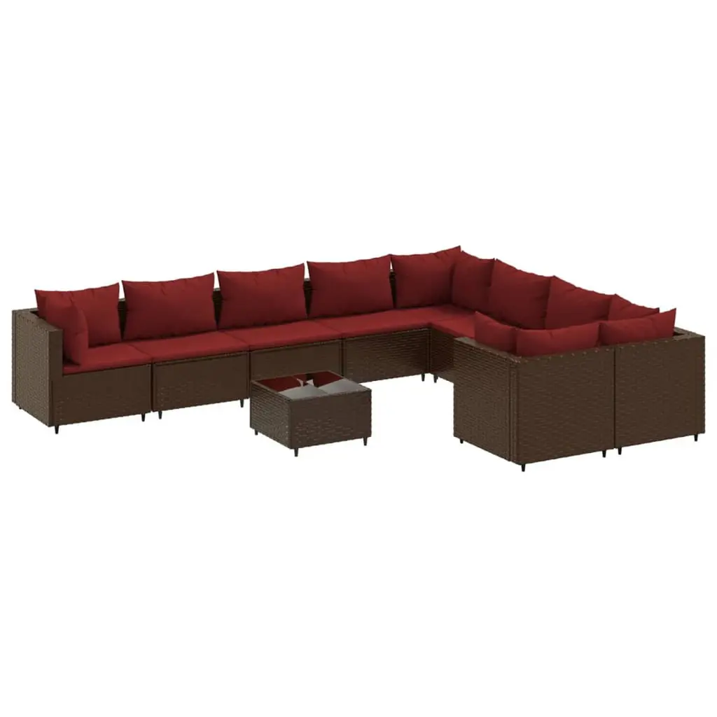 This 11-Piece Garden Lounge Set combines style and practicality, making it a fantastic choice for any patio or garden. Built from sturdy synthetic poly rattan and sleek powder-coated steel, it not only boosts your outdoor space’s elegance but also invites relaxation during sunny days or fun evenings with friends. Adjustable Modular Design: The modular setup lets you easily rearrange it to fit your space and preferences for ultimate comfort, whether you’re hosting a big party or enjoying a quiet day outside.Durable Weather-Resistant Materials: Made from PE rattan, this lounge set can handle rain and sun exposure, keeping it looking top-notch no matter the season. Perfect for any outdoor setting, blending beauty with practicality.Generous Seating for Comfort: With enough room for up to 9 people, this garden set is perfect for family gatherings or get-togethers with friends. Host barbecues and parties with ease, knowing your guests will be comfy.Easy to Clean and Maintain: The removable cushions simplify upkeep. They’ve got zippers, making it a cinch to take them off and clean them, so you can enjoy your outdoor moments without excessive maintenance.Sleek Modern Style: With a trendy design and a refined brown and red palette, this lounge set fits right in with any outdoor decor. It spruces up your garden or balcony and invites relaxing time with friends and family.